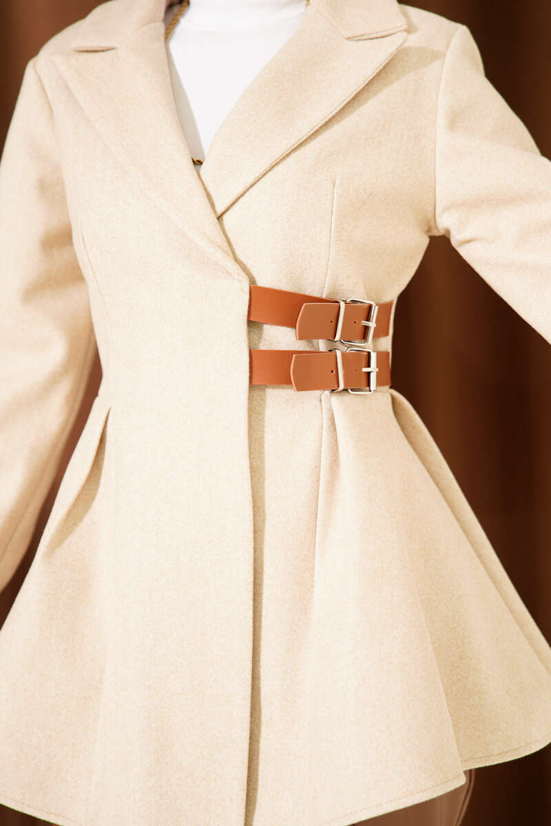 Kemer Detaylı Kaşe Ceket Kırmızı
