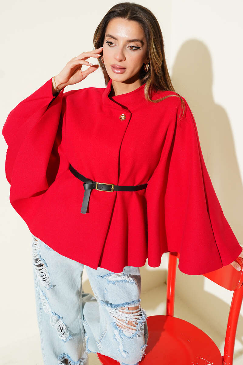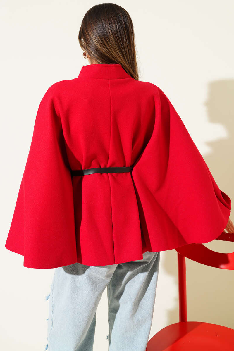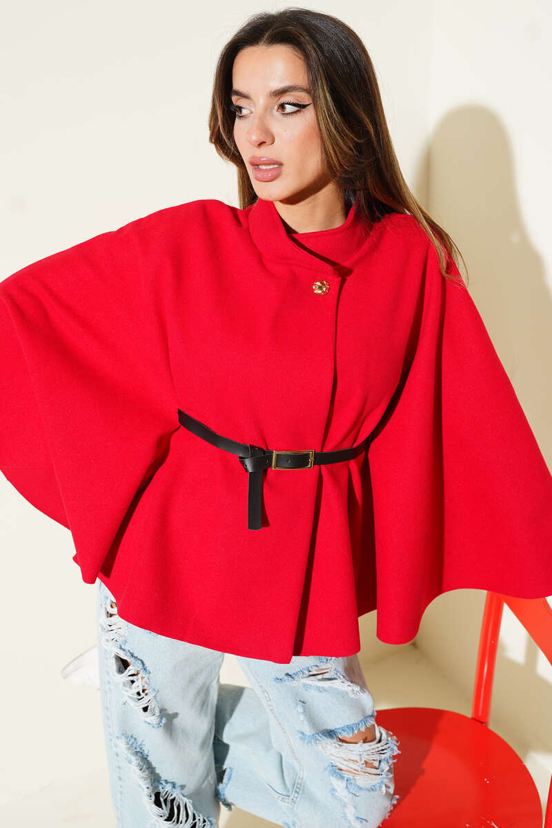 Yan Gold Düğmeli Kaşe Panço Siyah