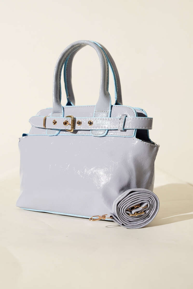 Kemer Geçiş Detaylı Parlak Çanta Bebe Mavi