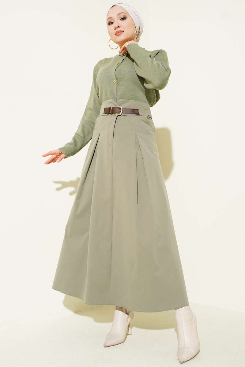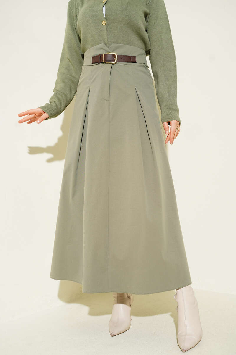 Beli Lastikli Çiçek Dese Pileli Etek Kahve