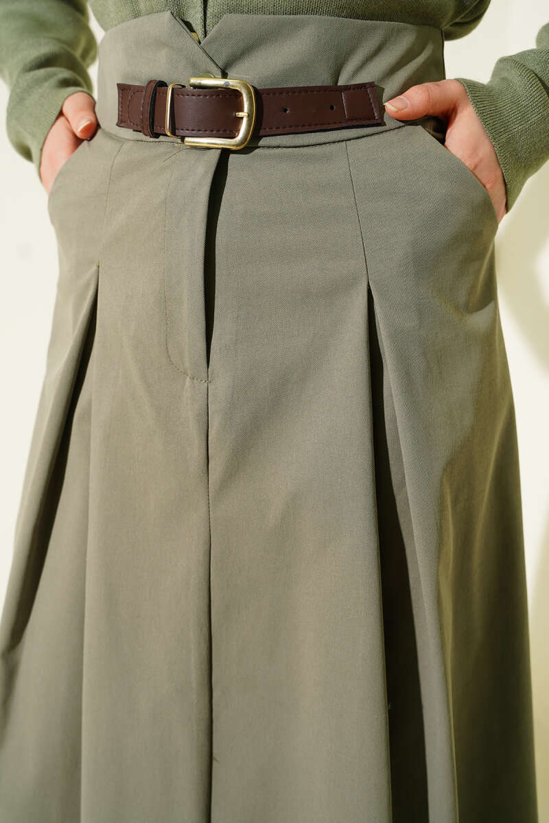 Ekoseli Beli Lastikli Kloş Etek Camel