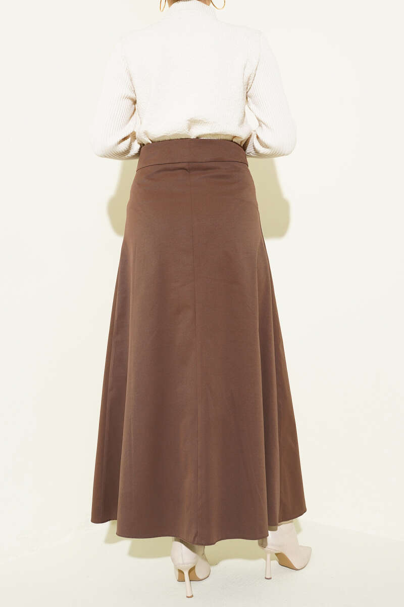 Ekose Desenli Bel Fermuarlı Etek Acı Kahve