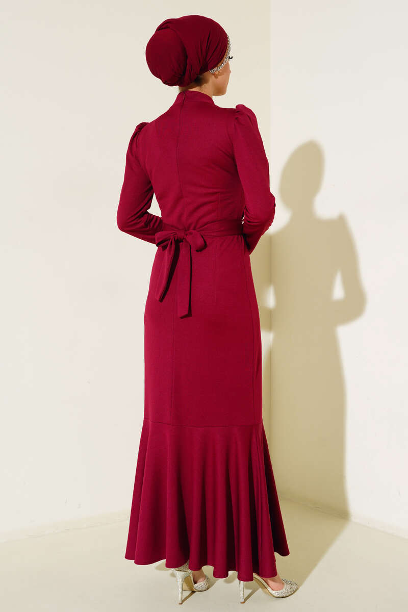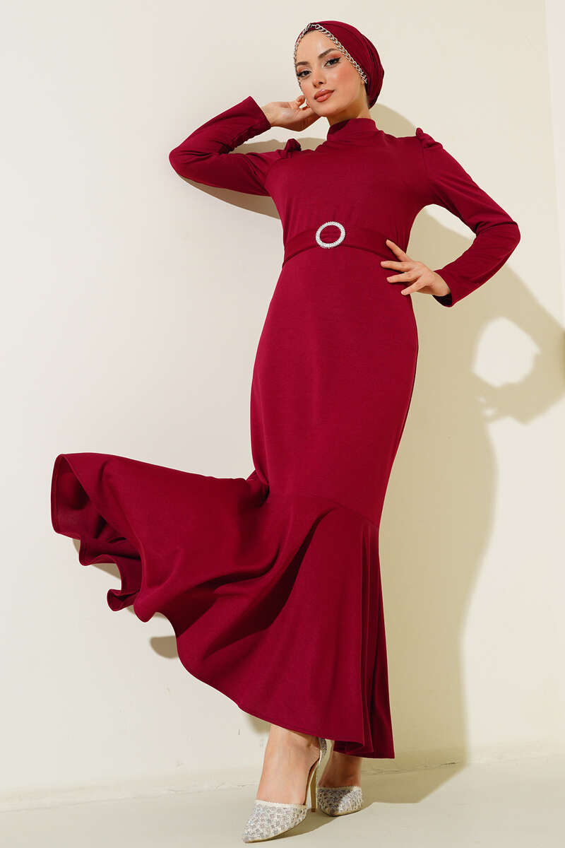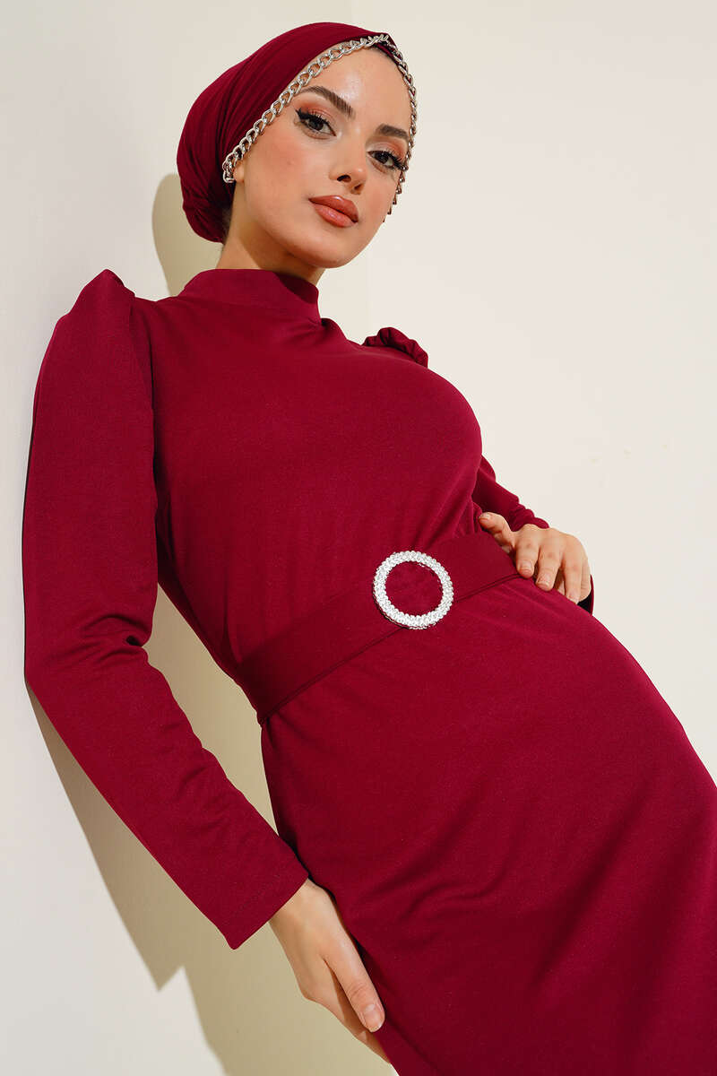 Kemer Tokalı Elbise Mürdüm