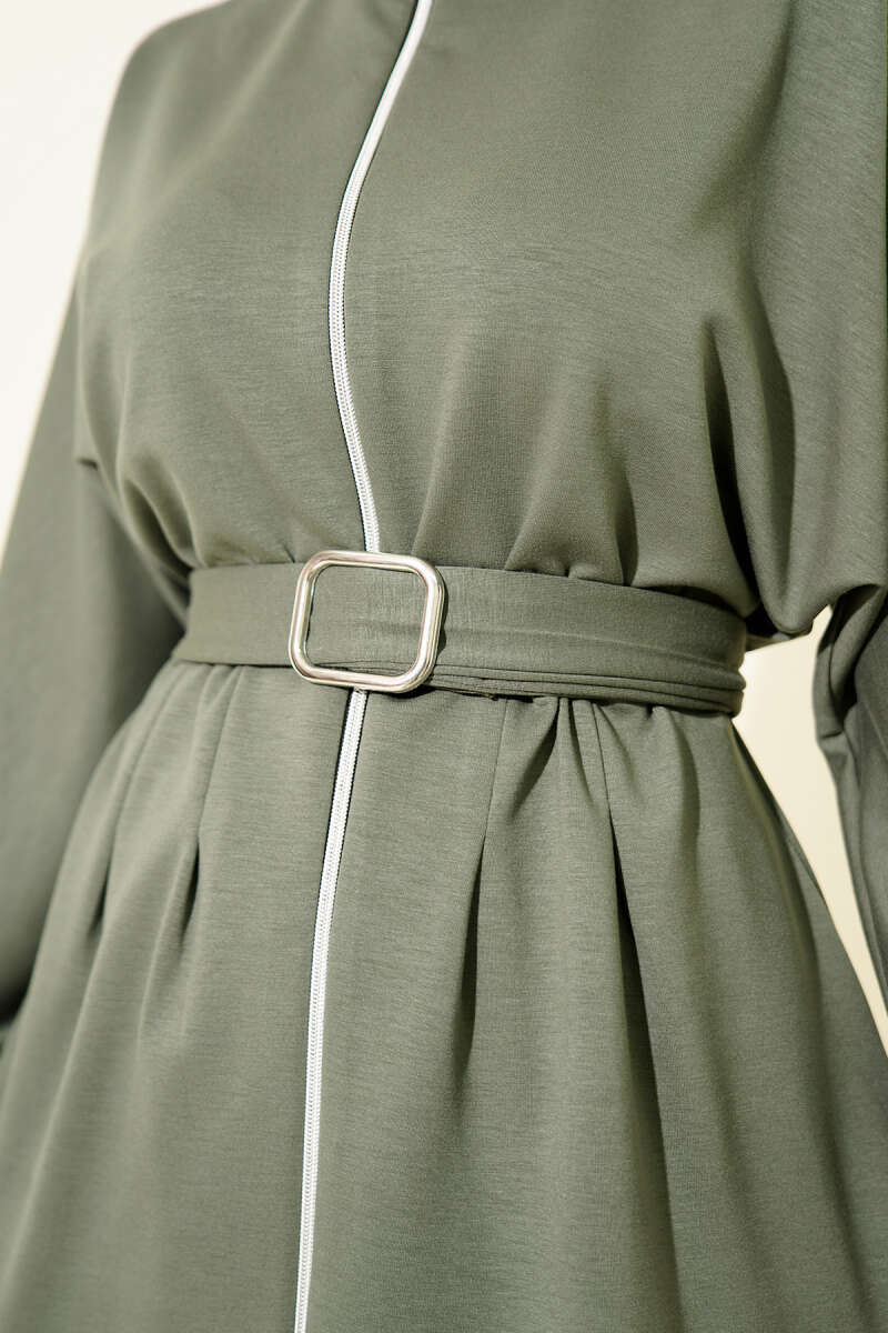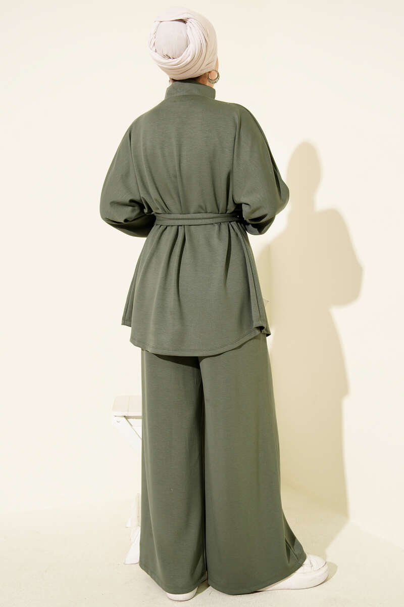 Kol Şeritli Düğmeli Scuba İkili Takım Vizon