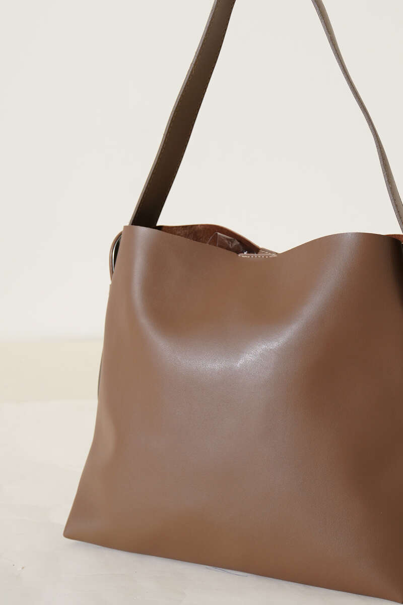 Mini Cüzdan Detaylı Uzun Kulplu Çanta Acı Kahve