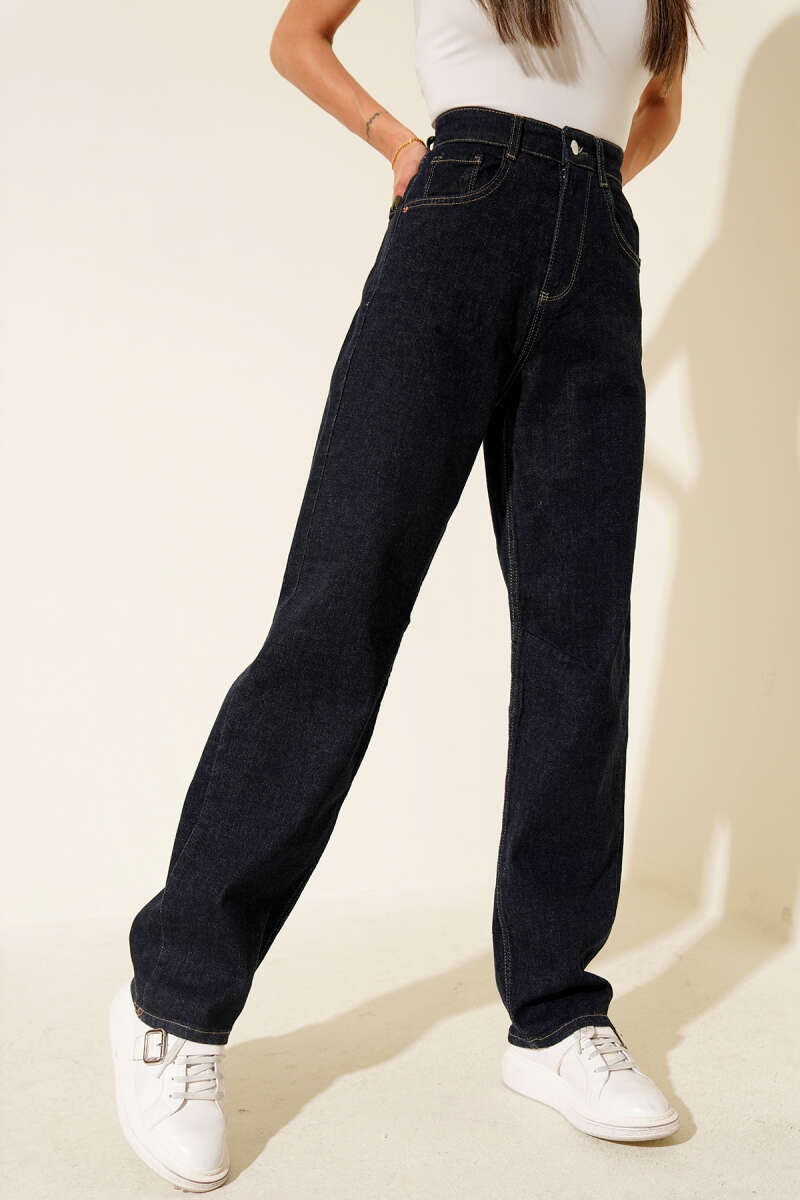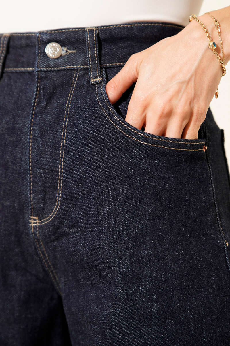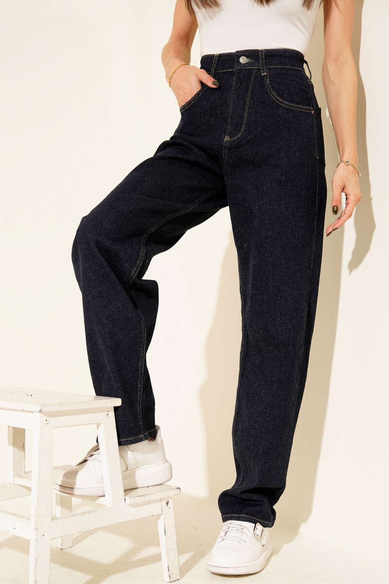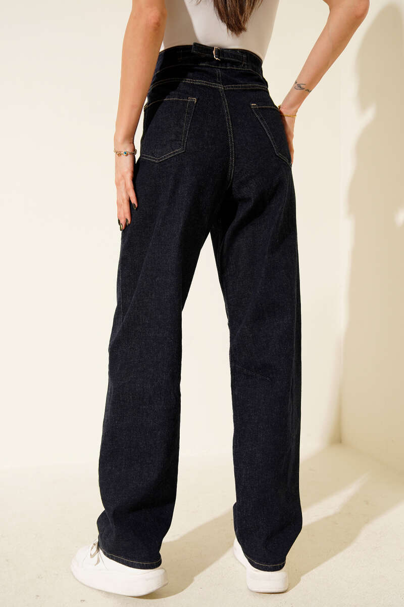 Kemer Tokalı Mom Kot Pantolon Lacivert