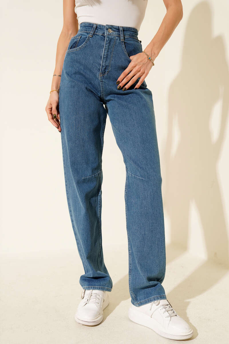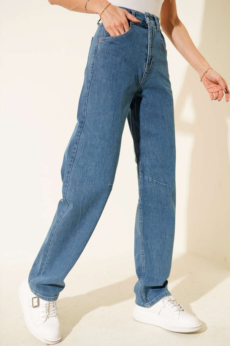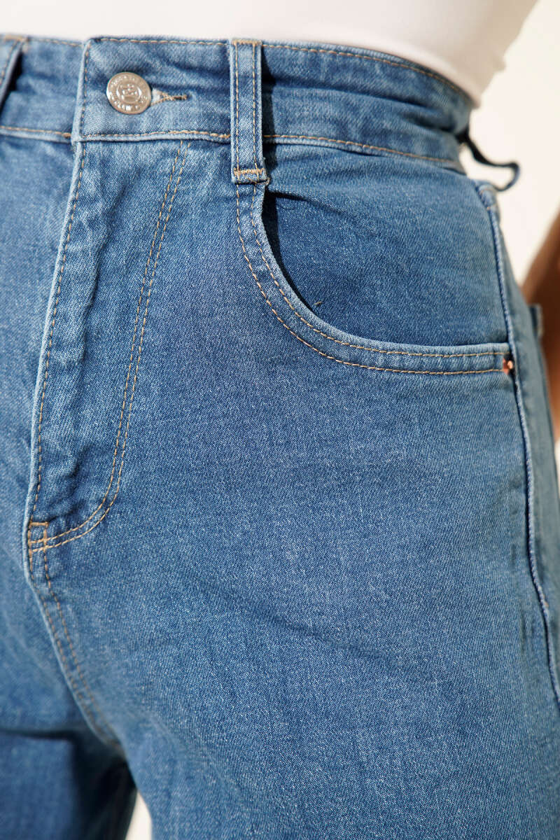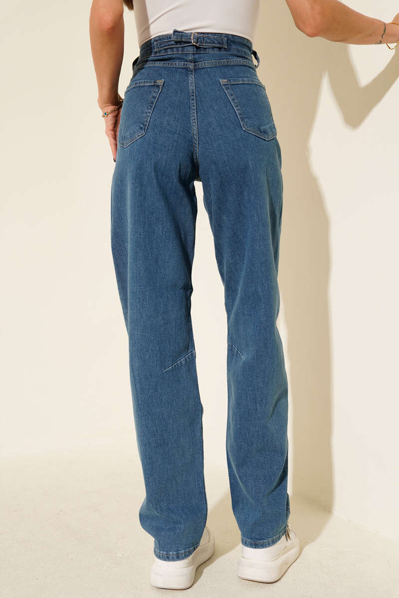 Kemer Tokalı Mom Kot Pantolon Mavi