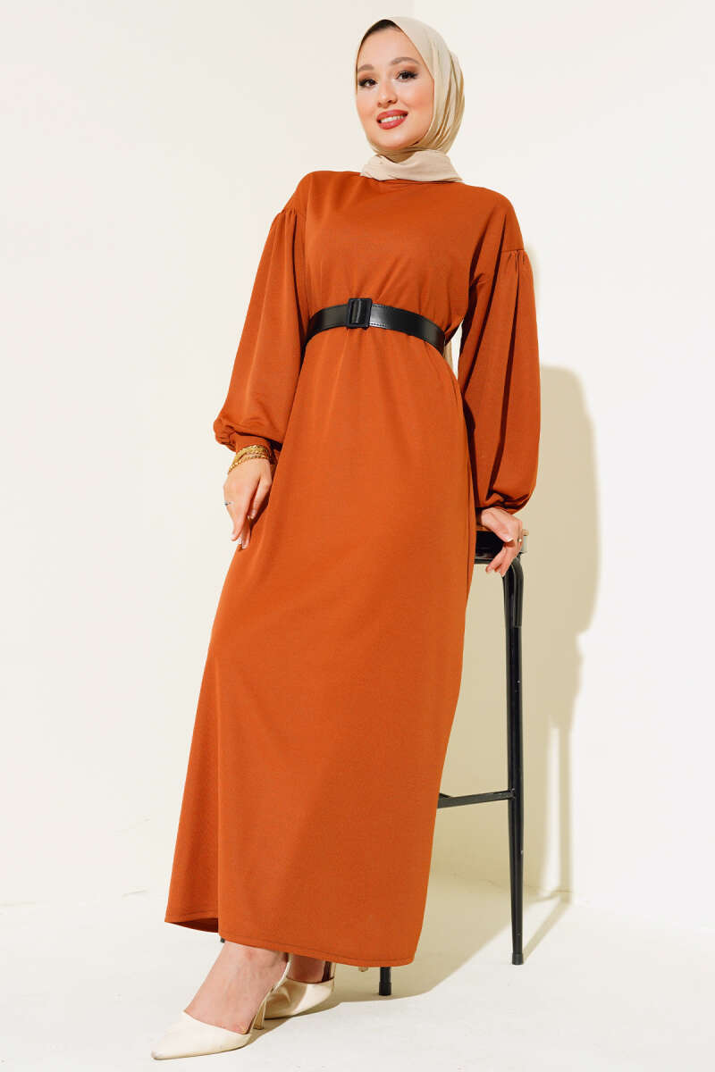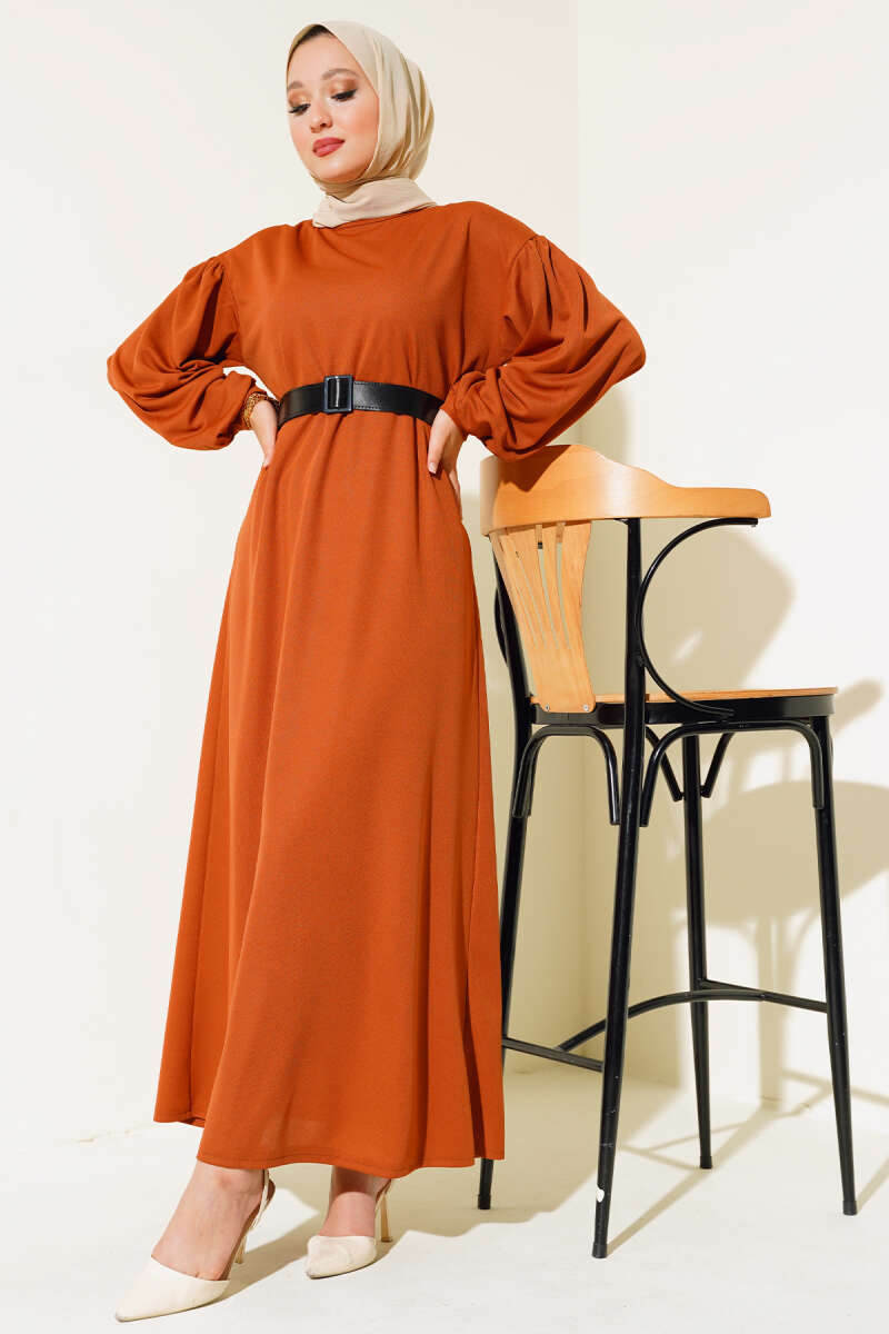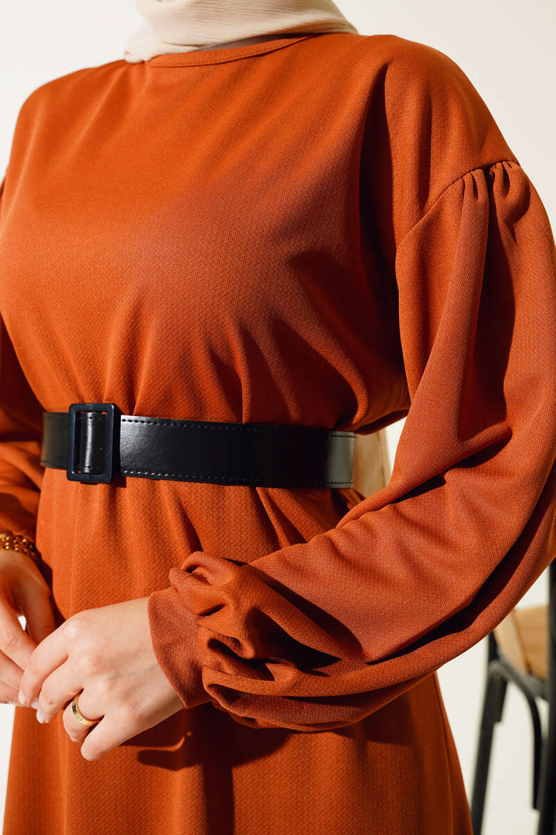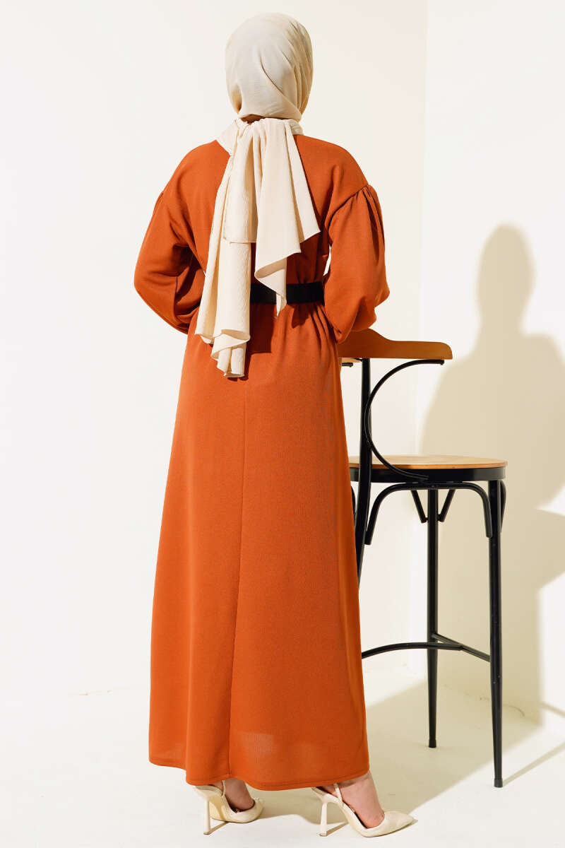 Etek Ucu Desenli Boydan Düğmeli Elbise Kahve