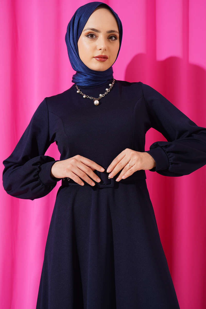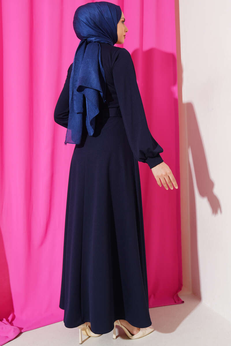 Kolları Fiyonk Detaylı Selanik Elbise Taş