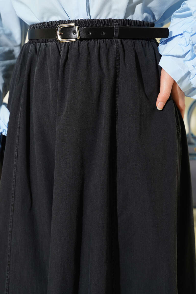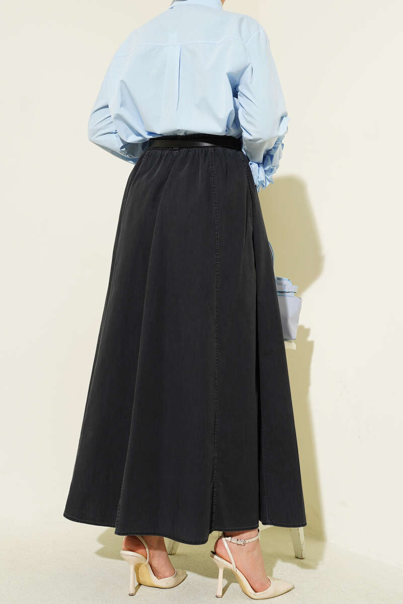 Kemerli Bel Lastikli Kloş Etek Lacivert