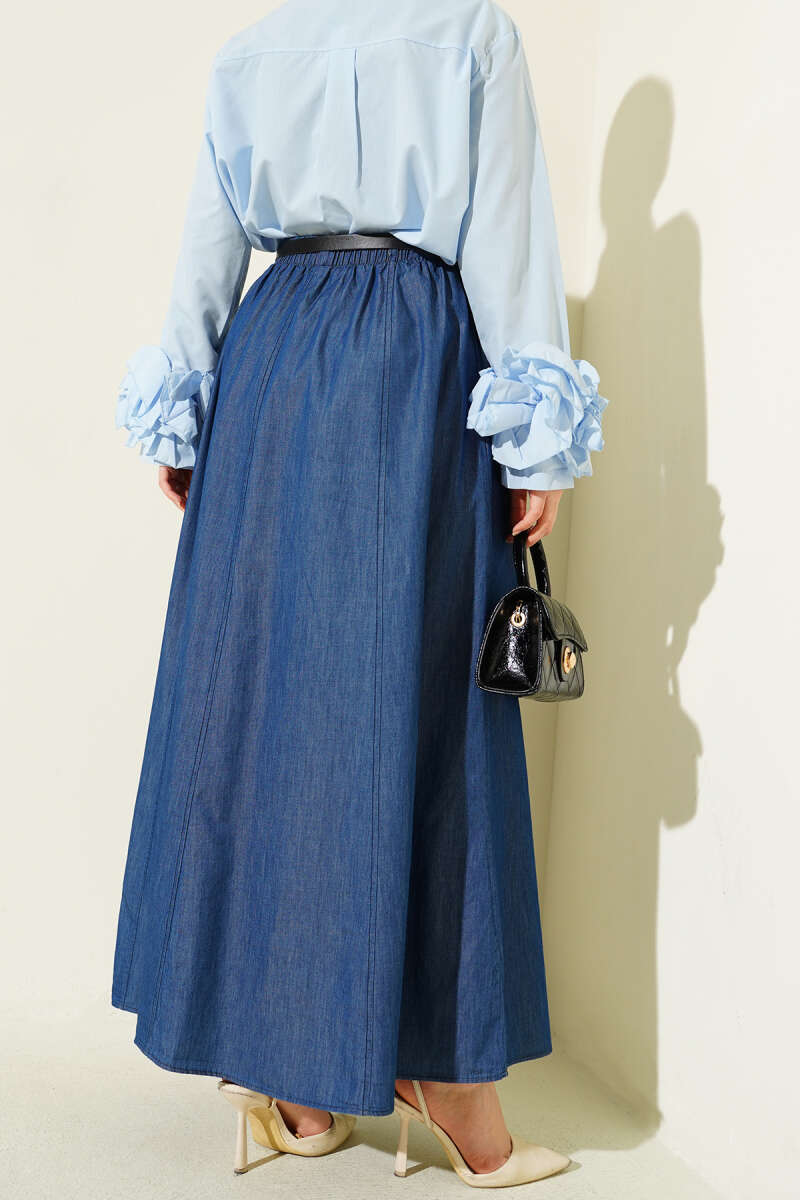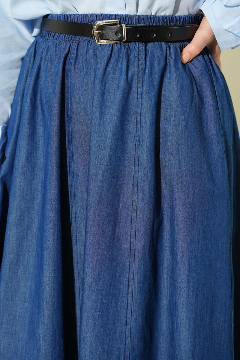 Beli Lastikli Modal Kloş Etek İndigo
