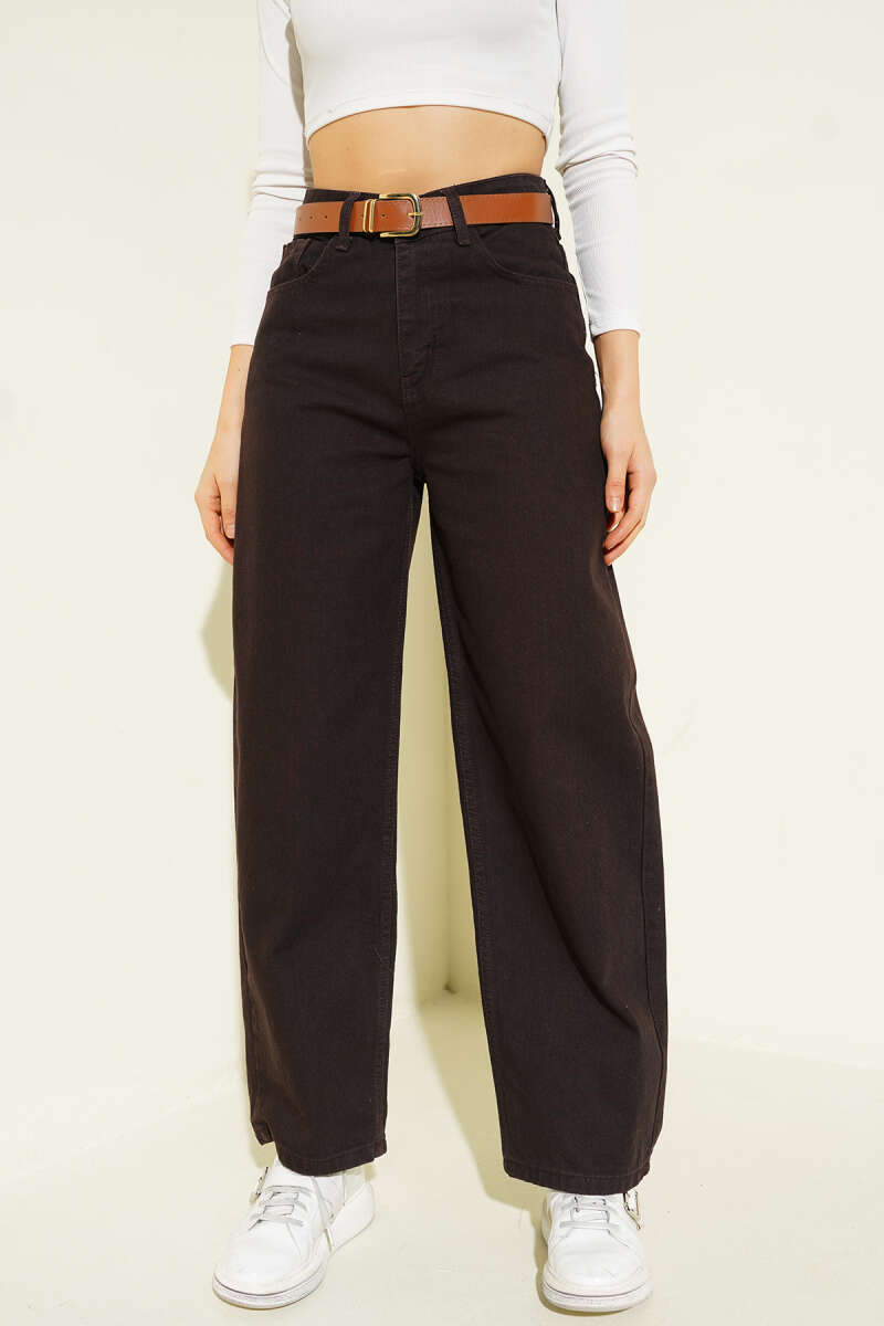 Bisiklet Yaka Uzun Triko Elbise Kahve
