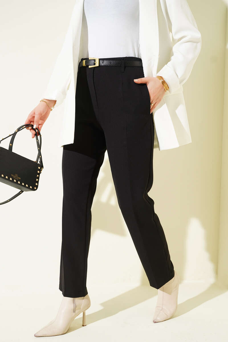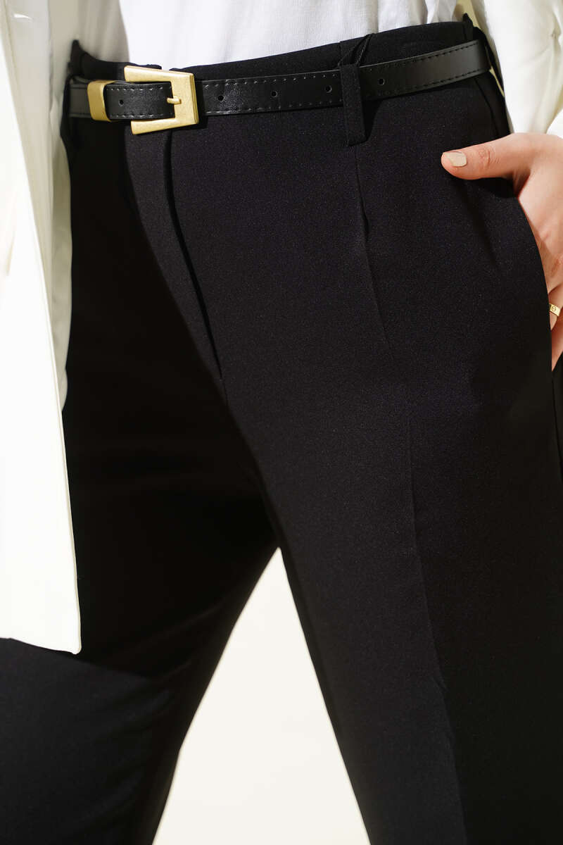 Kemerli Pileli Geniş Paça Pantolon Siyah