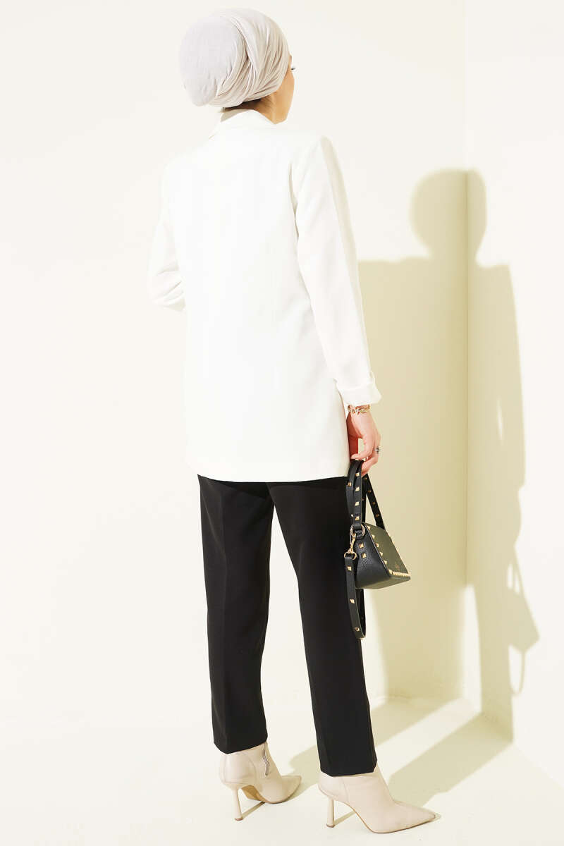 Geniş Bel Lastikli Çımalı Pantolon Beyaz