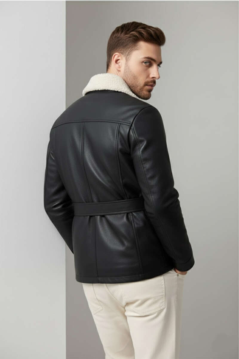 Çıtçıtlı Ribanalı Deri Erkek Kolej Ceket Siyah