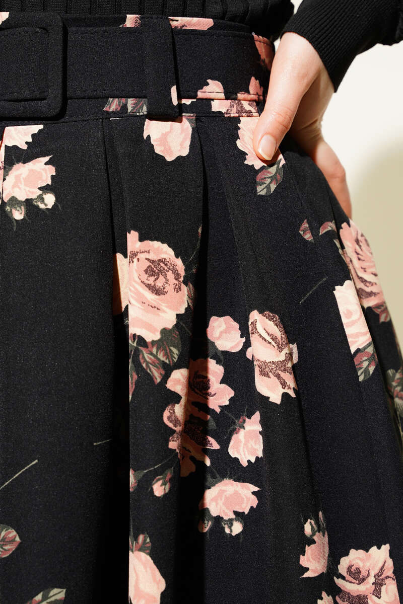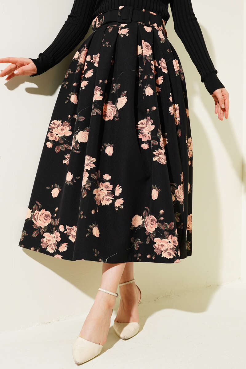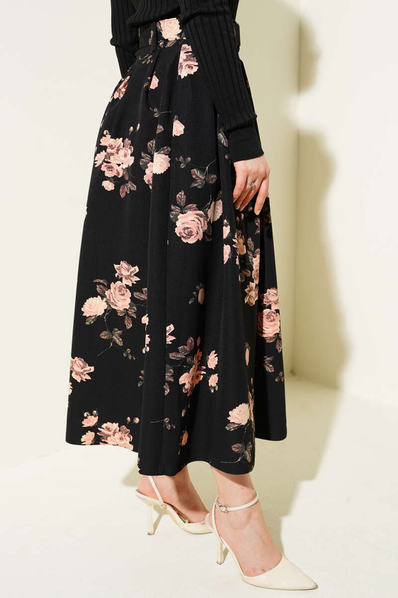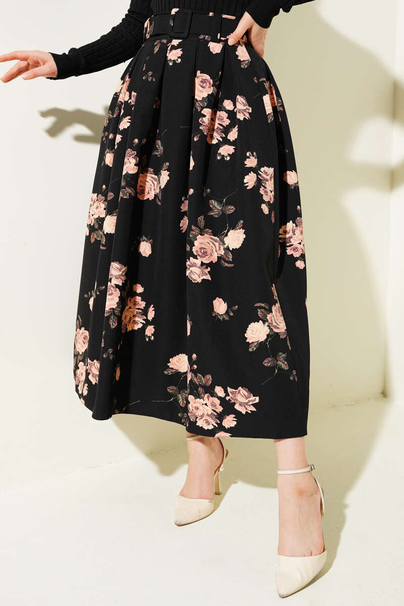 Çift Kemer Detaylı Etek Siyah