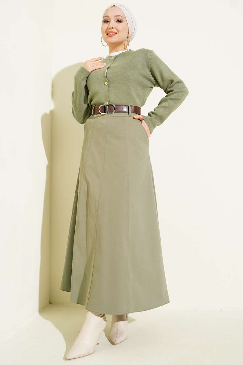 Parça Detaylı Bağlamalı Scuba Etek Kahve
