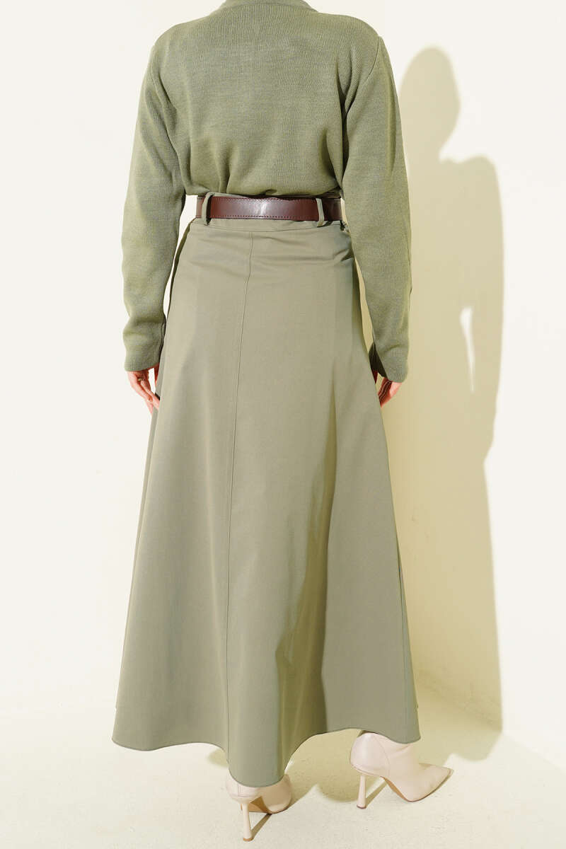 Düğme Detaylı Kemerli Deri Etek Siyah
