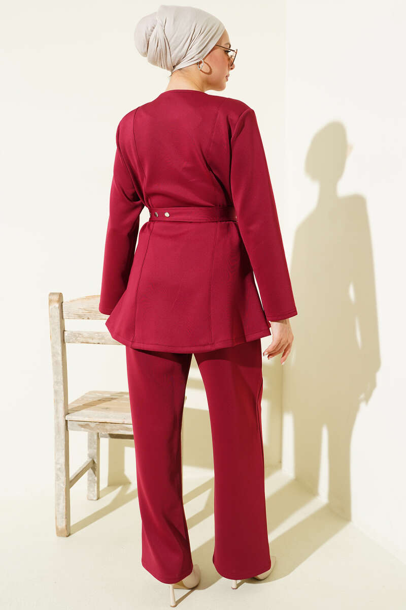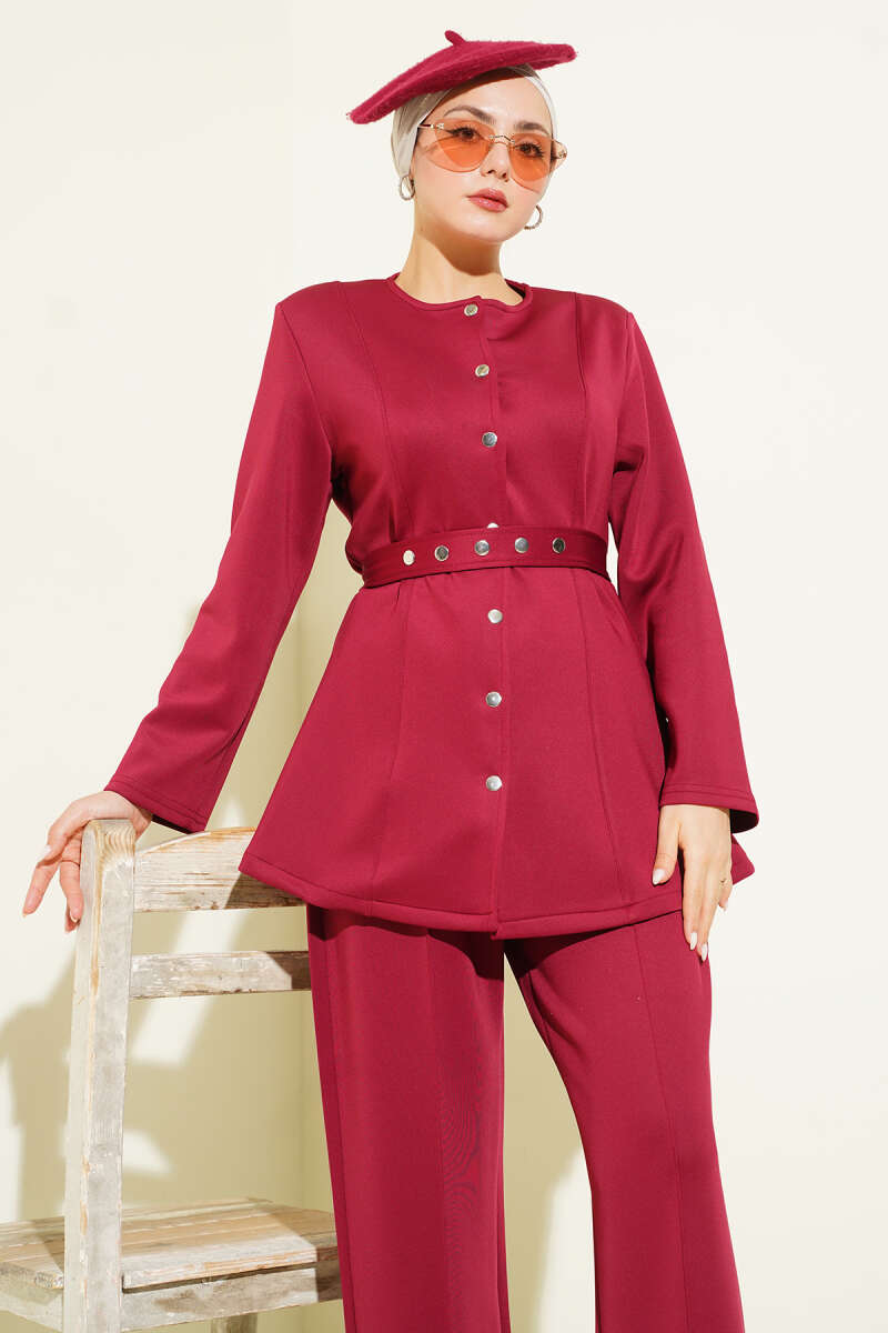 Bisiklet Yaka Yanları Metal Düğmeli İkili Takım Mürdüm