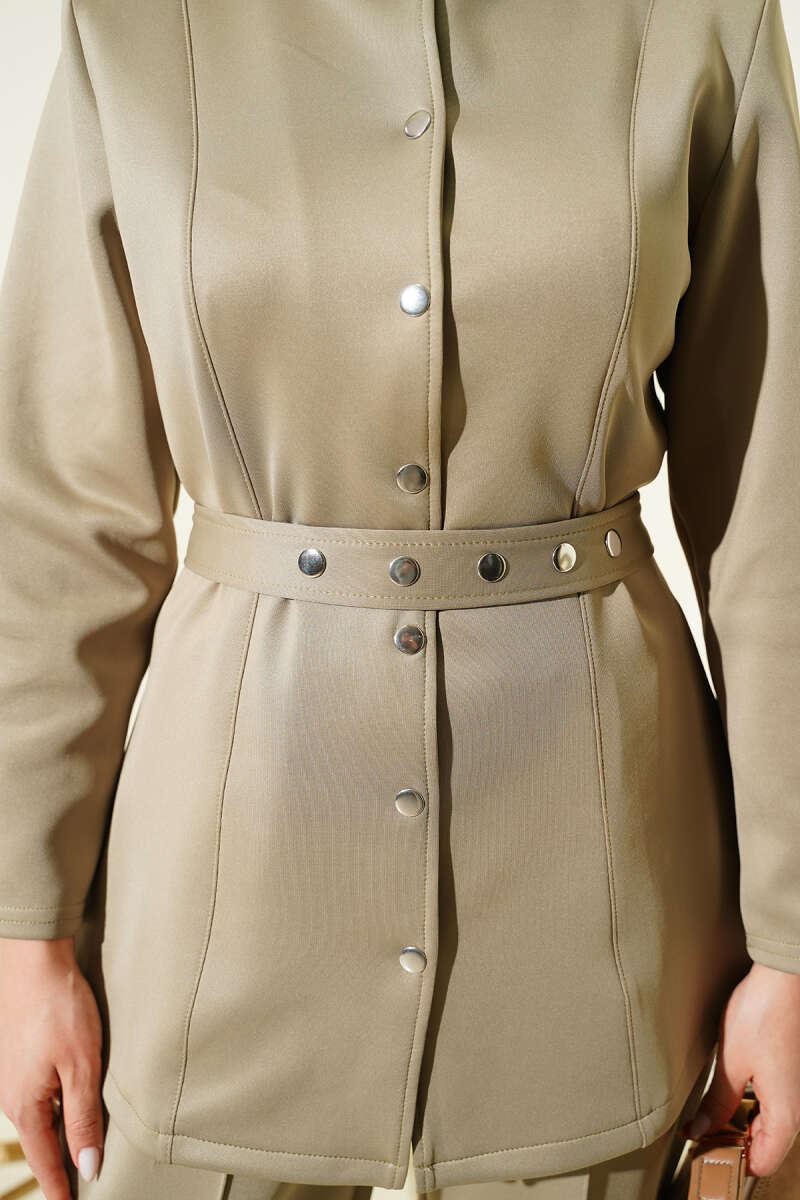 Kemerli Çıtçıtlı Ceket İkili Takım Bej