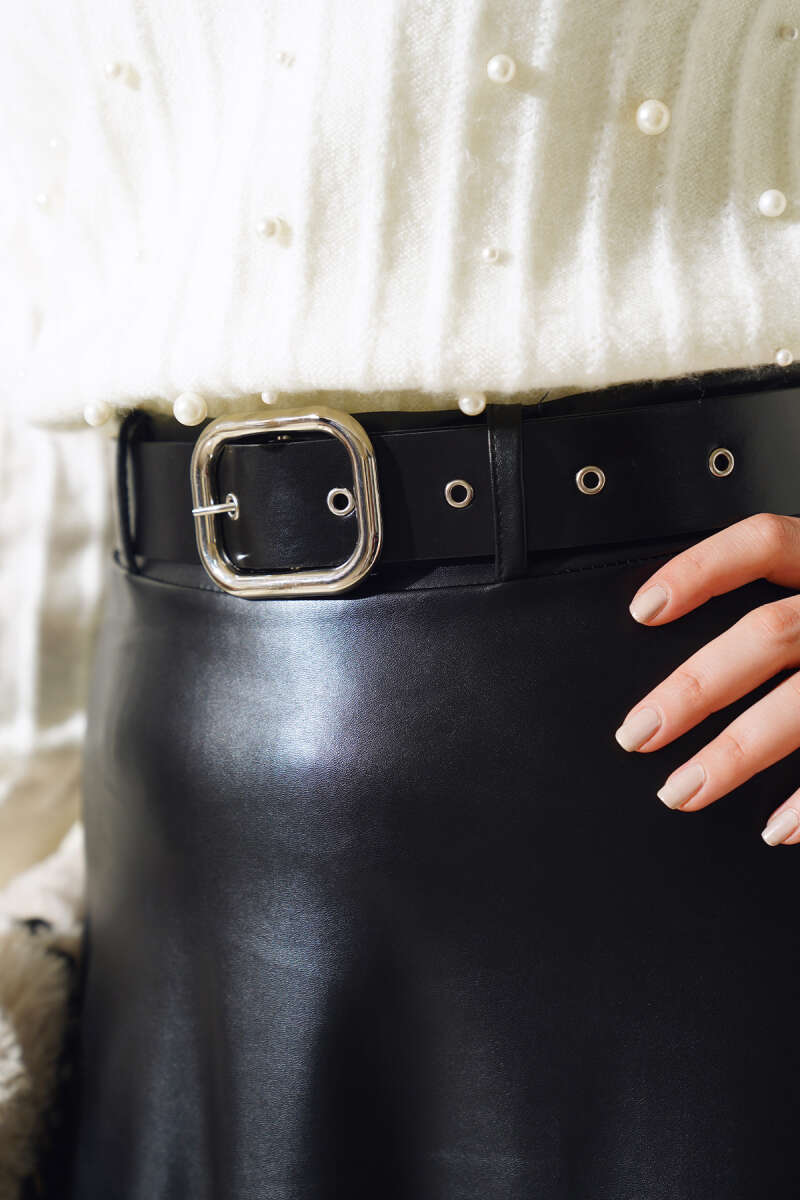 Kemer Aksesuarlı Ekoseli Etek Haki