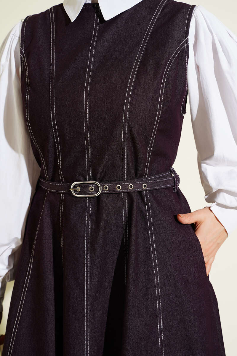 Kemerli Dikiş Detaylı Kot Jile Bordo