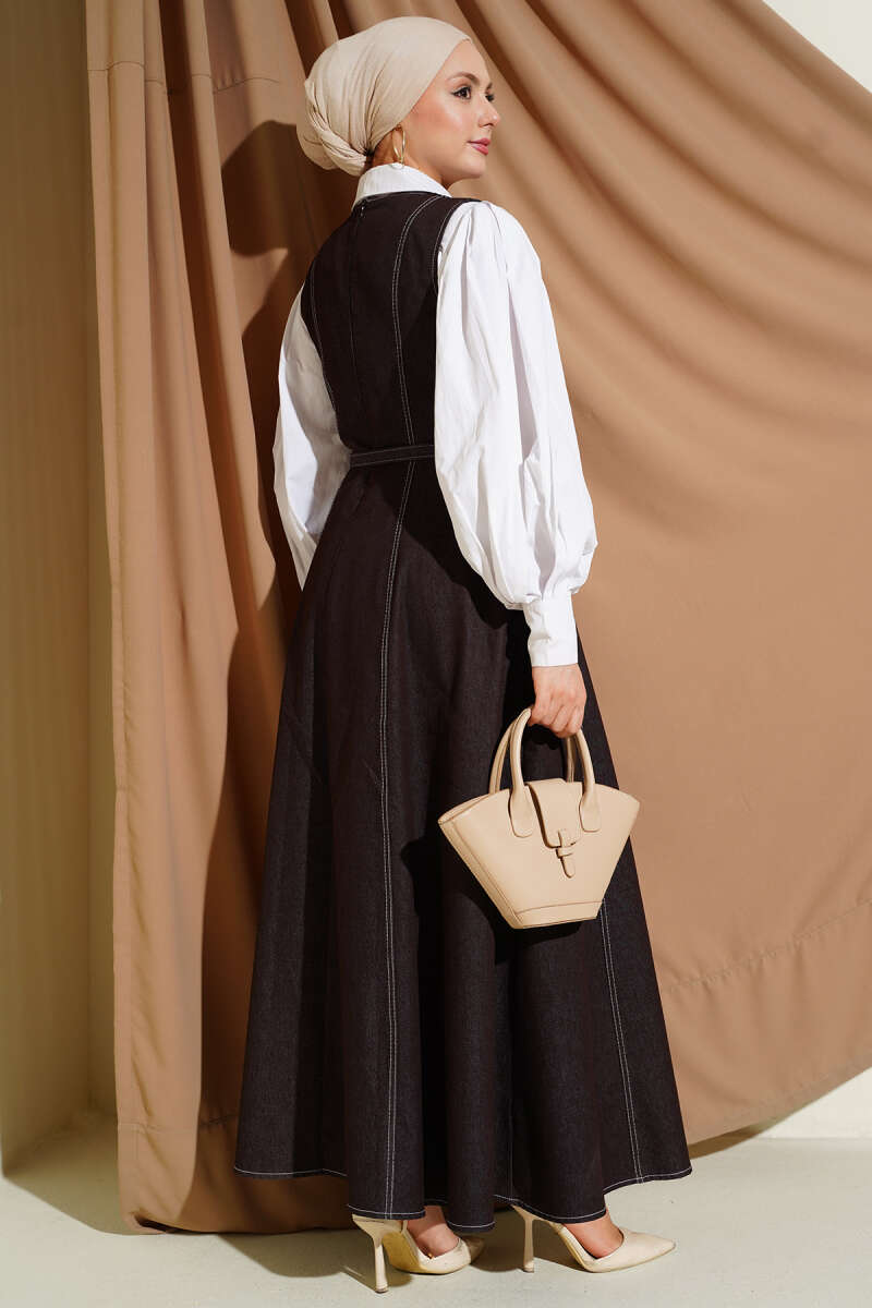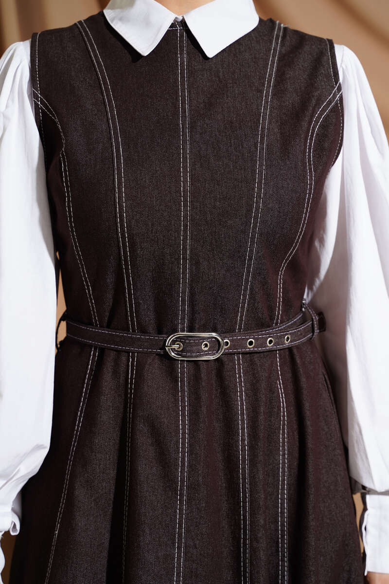 Kemerli Dikiş Detaylı Kot Jile Kahve