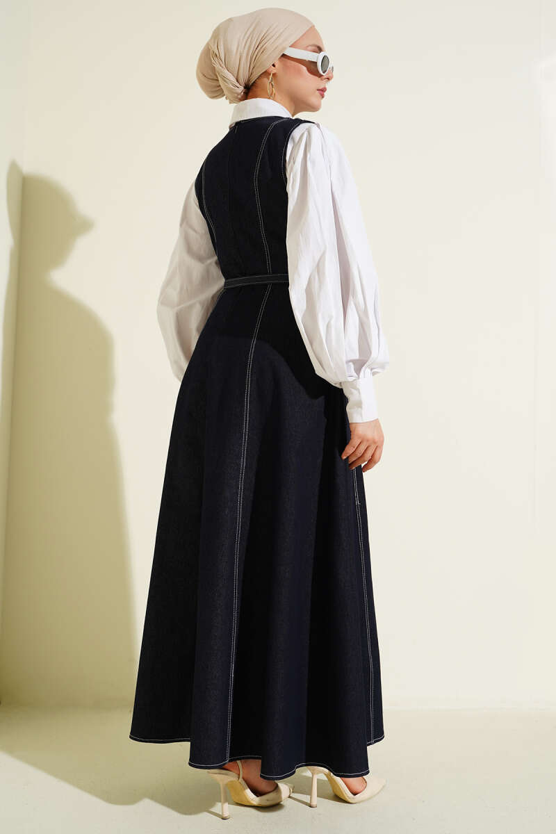 Kemerli Dikiş Detaylı Kot Jile Lacivert