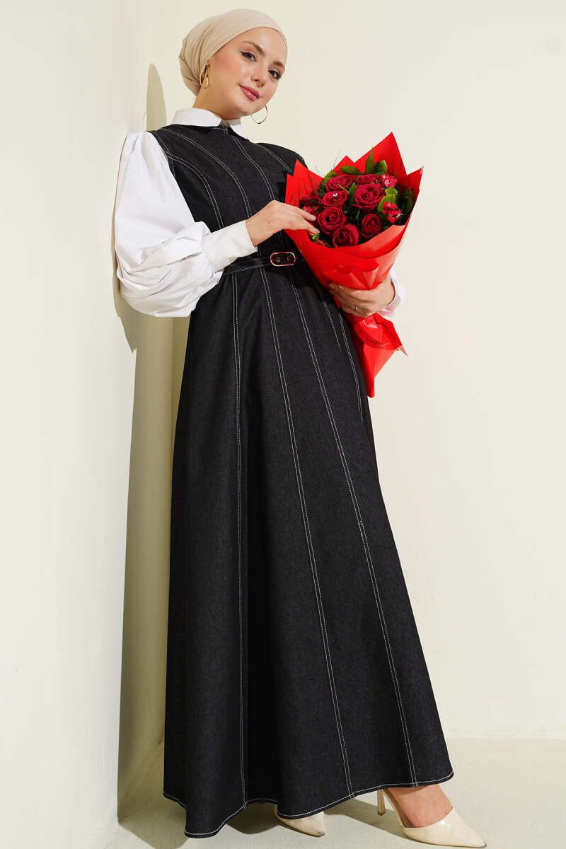 Kemerli Dikiş Detaylı Kot Jile Siyah