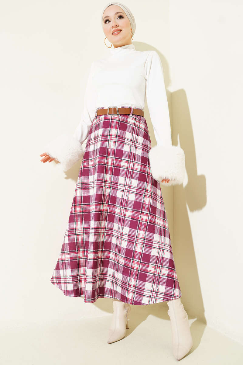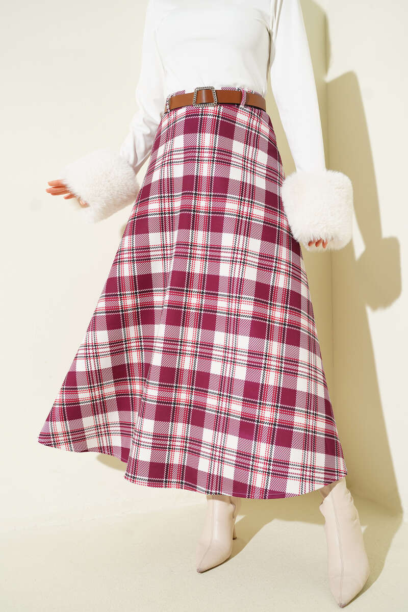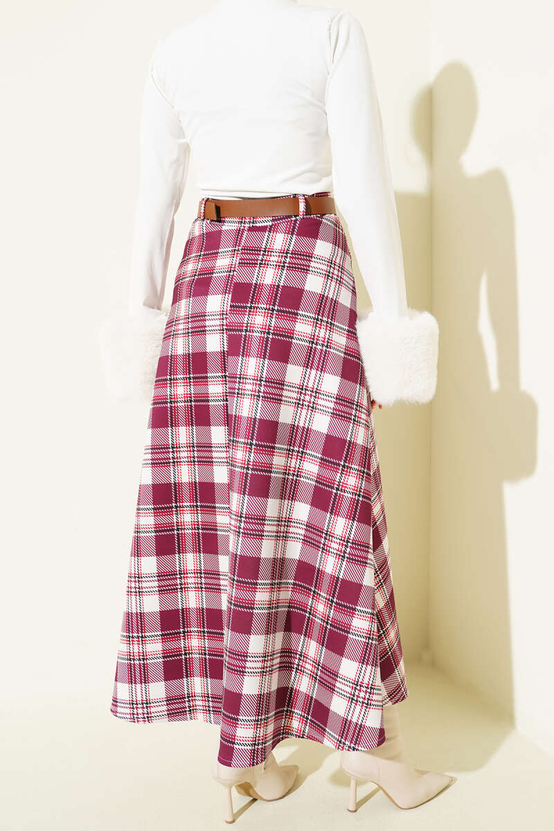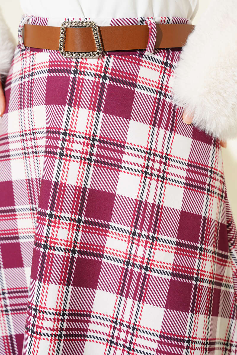 Beli Lastik Detaylı Kloş Scuba Etek Bordo