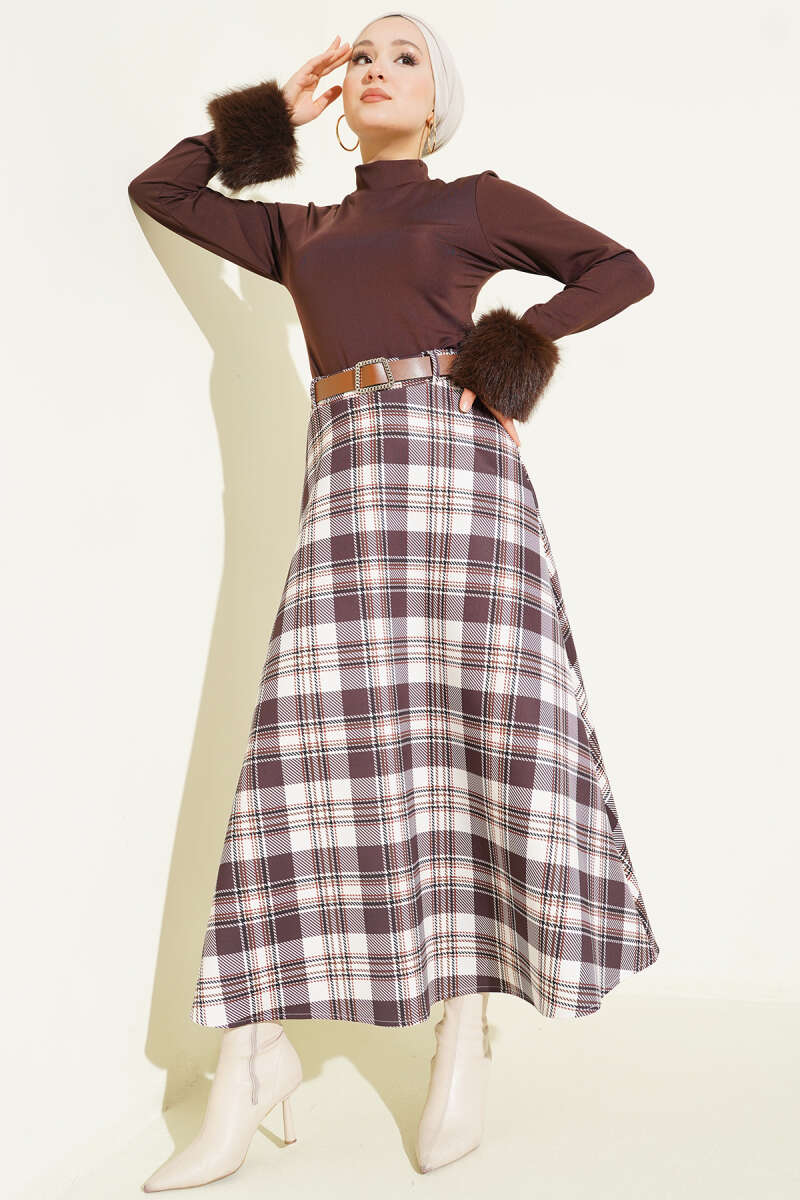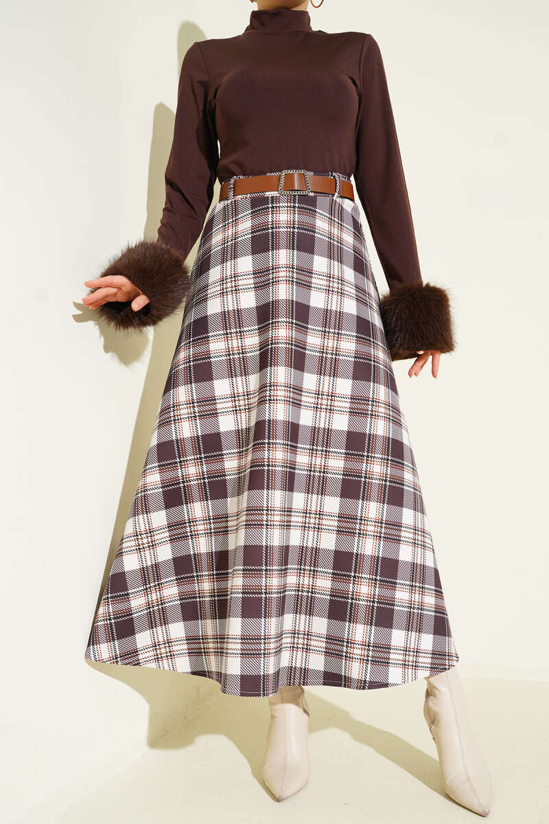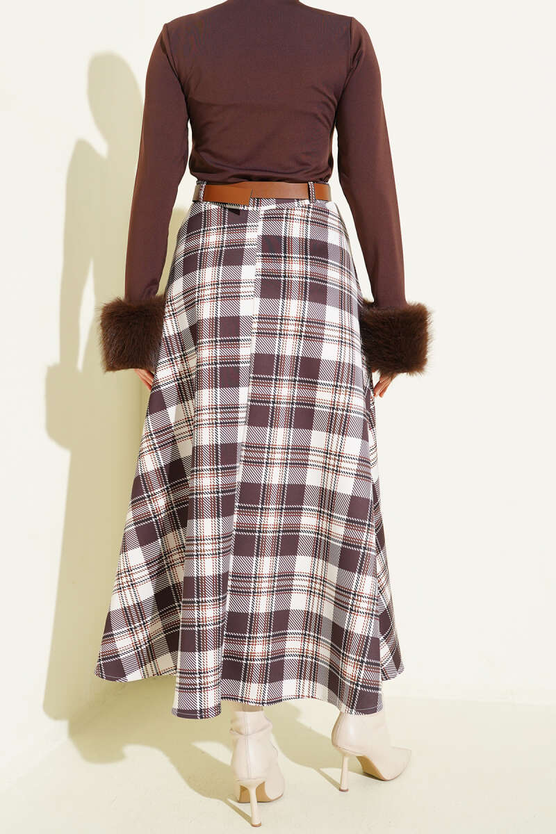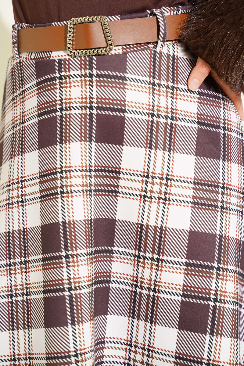 Ekose Desenli Etek Vizon