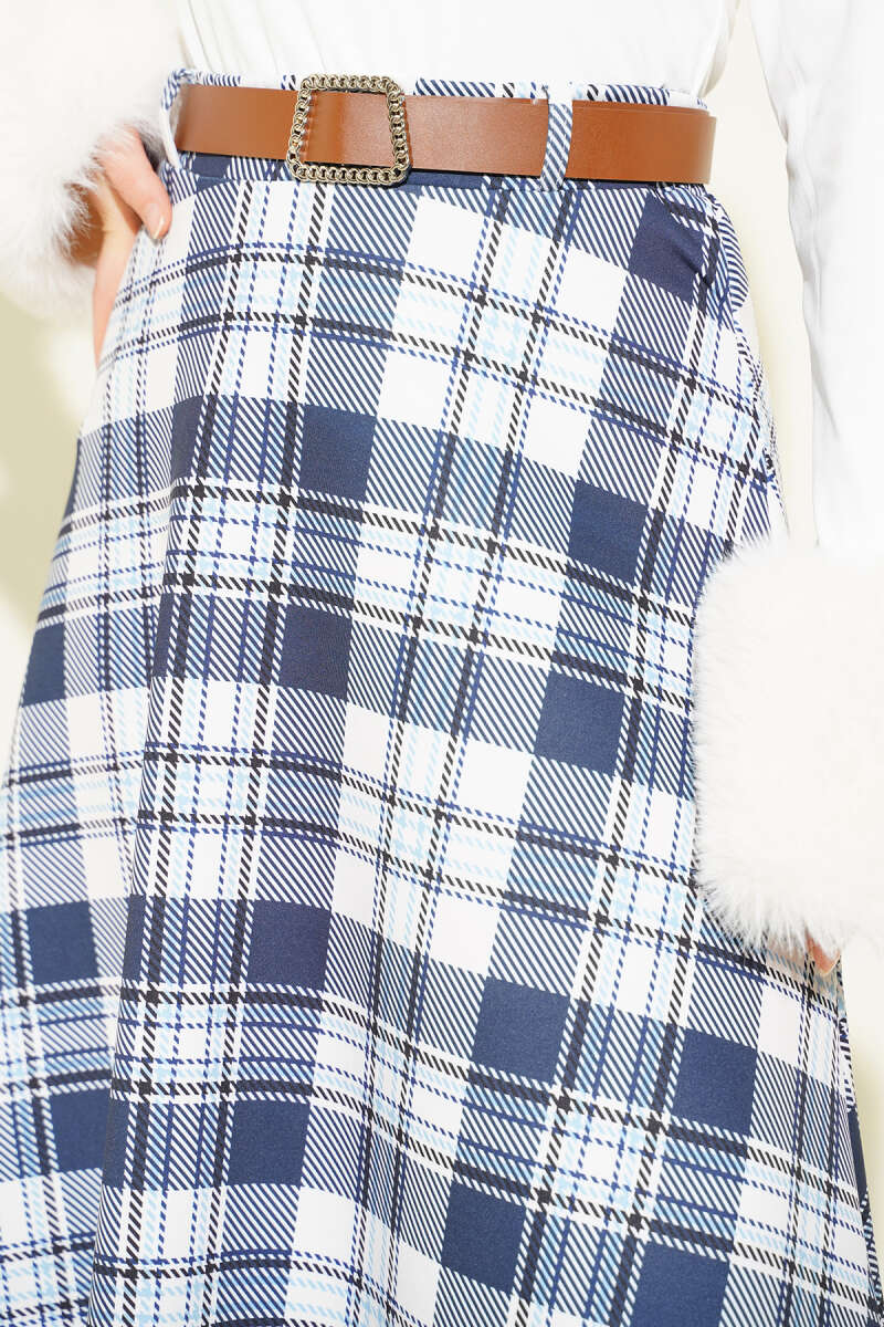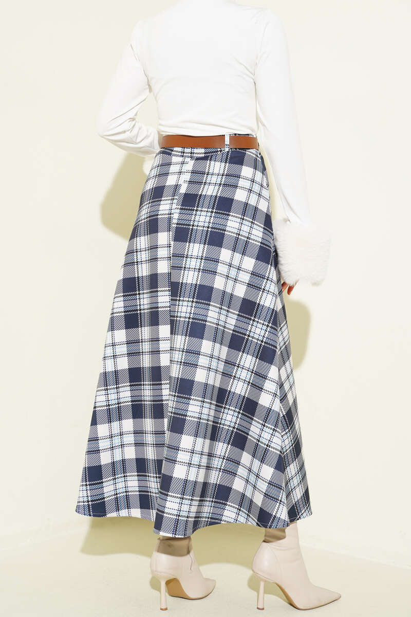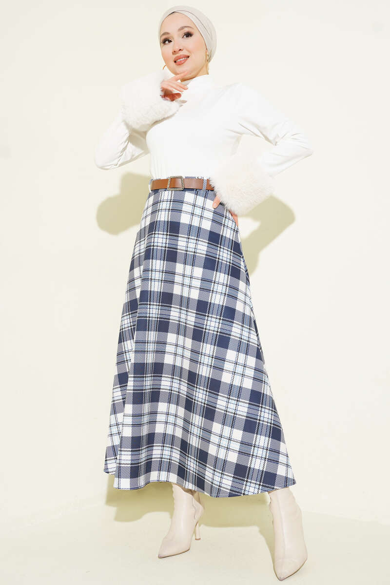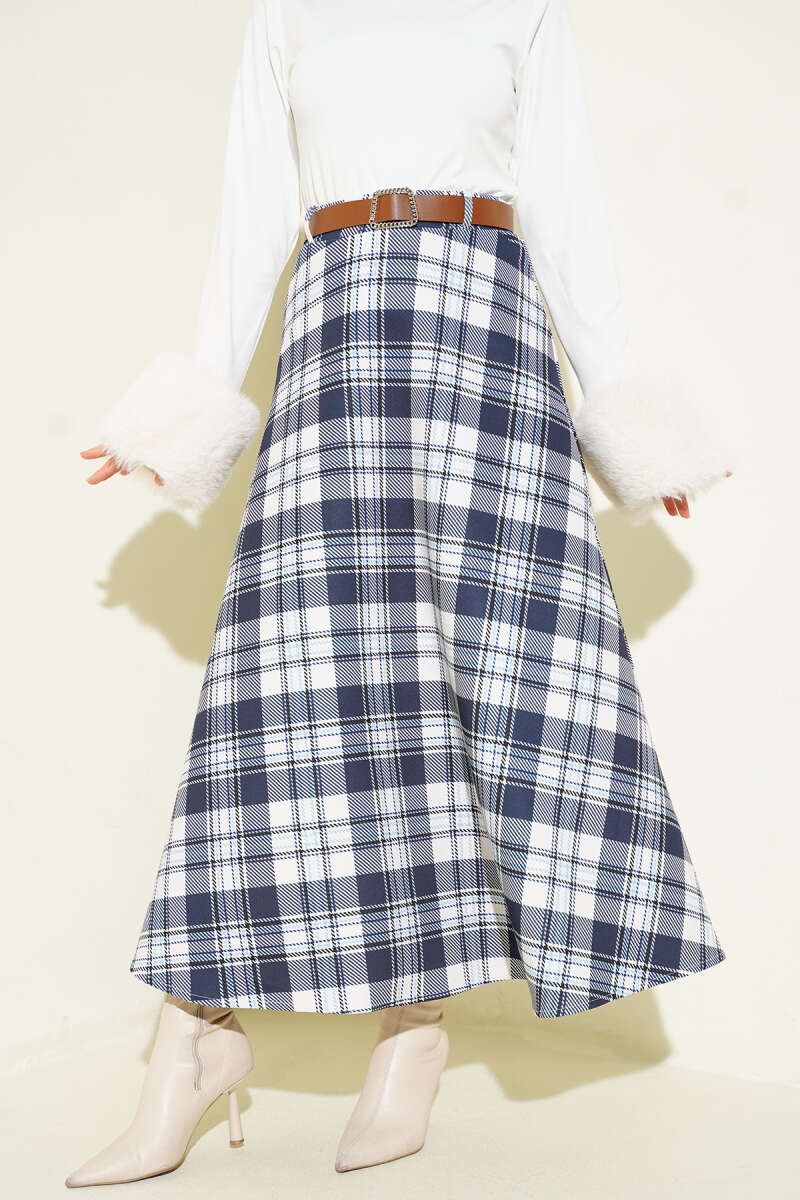 Beli Lastik Detaylı Kloş Scuba Etek Lacivert