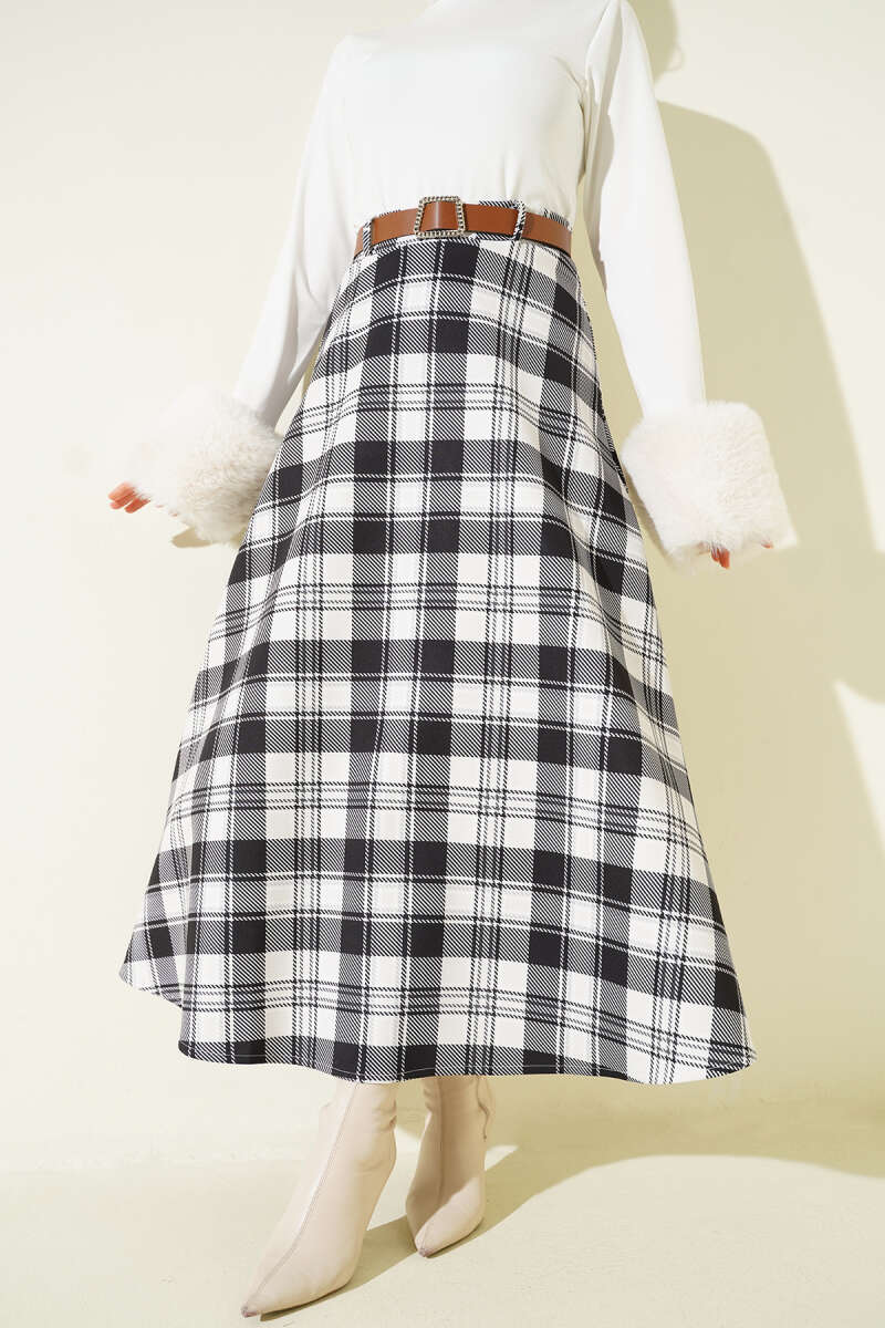 Beli Lastik Detaylı Kloş Scuba Etek Siyah
