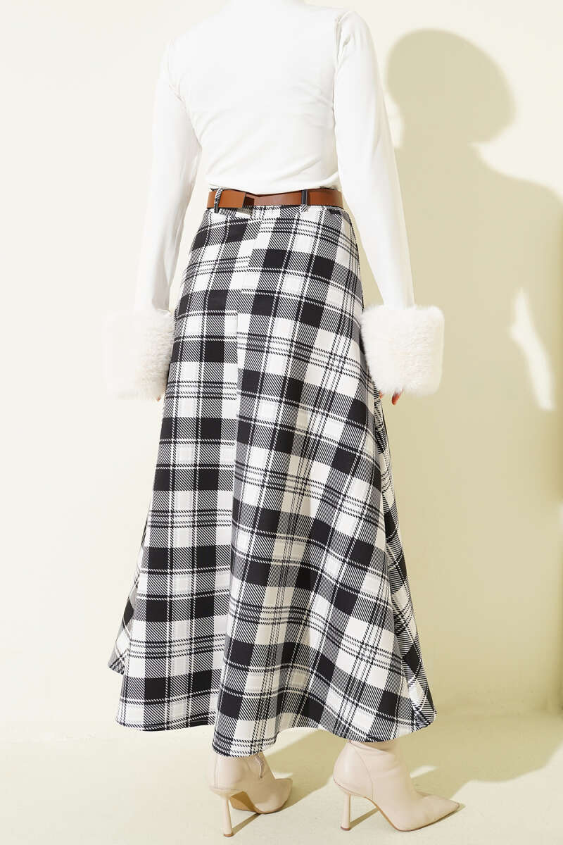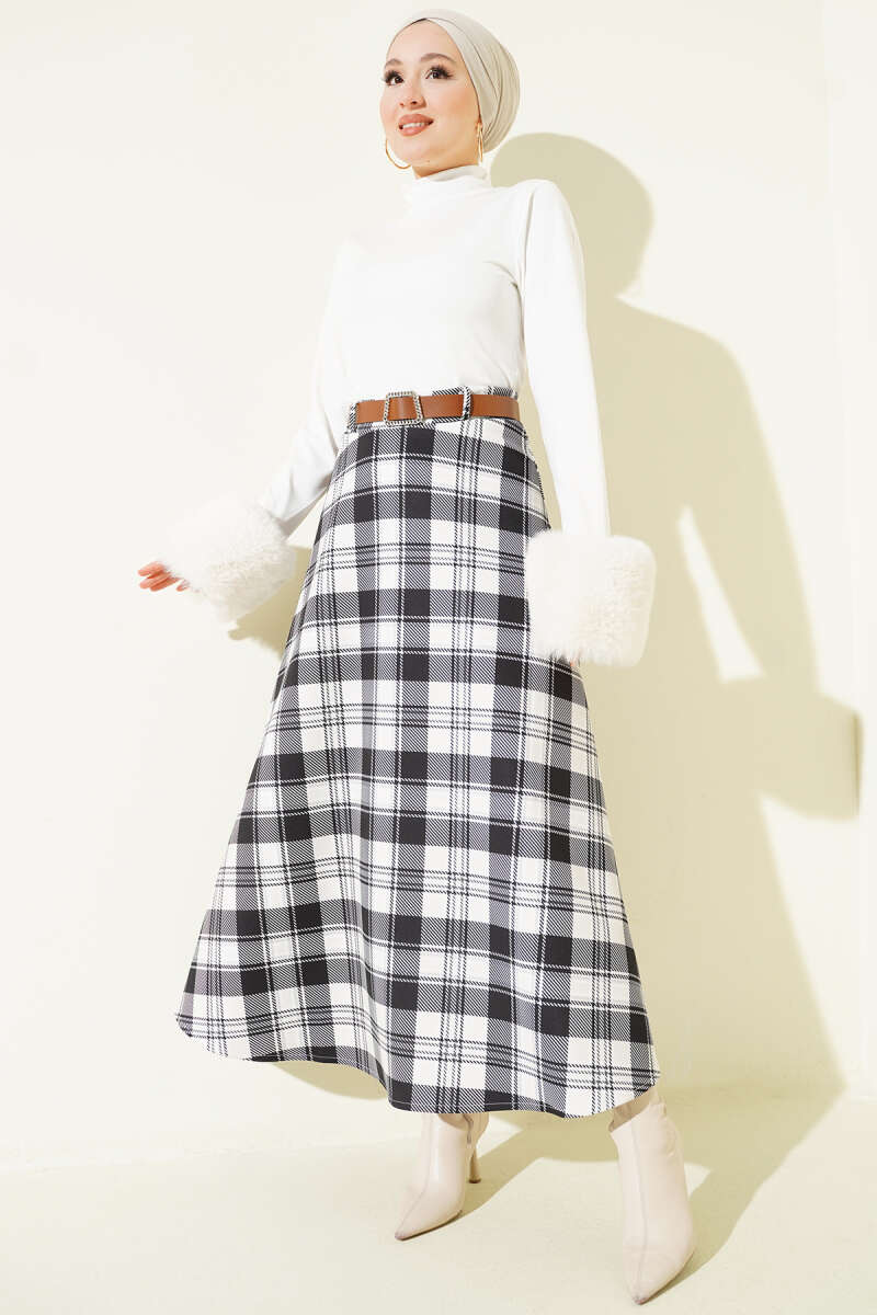 Beli Kemerli Lastikli Pileli Etek Kiremit