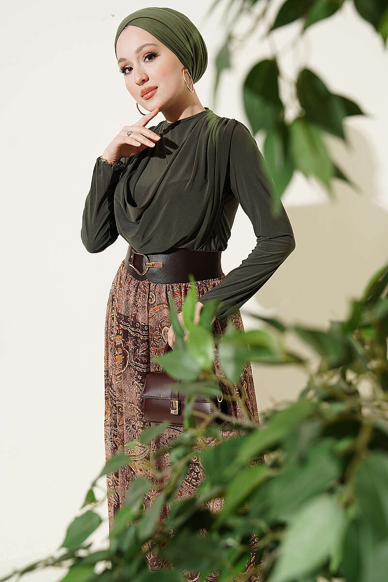 Kolları Fırfırlı Düğmeli İkili Takım Haki