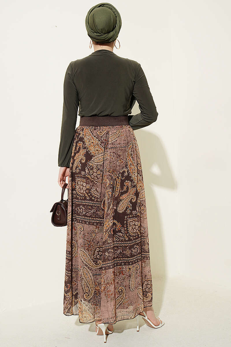 Kolları Fırfırlı Düğmeli İkili Takım Kahve
