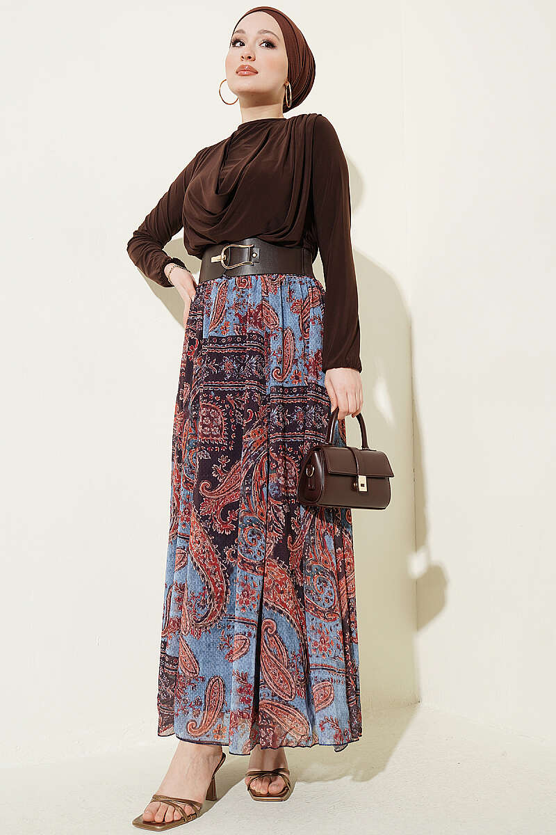 Kemerli Etnik Desenli ikili Takım Kahve
