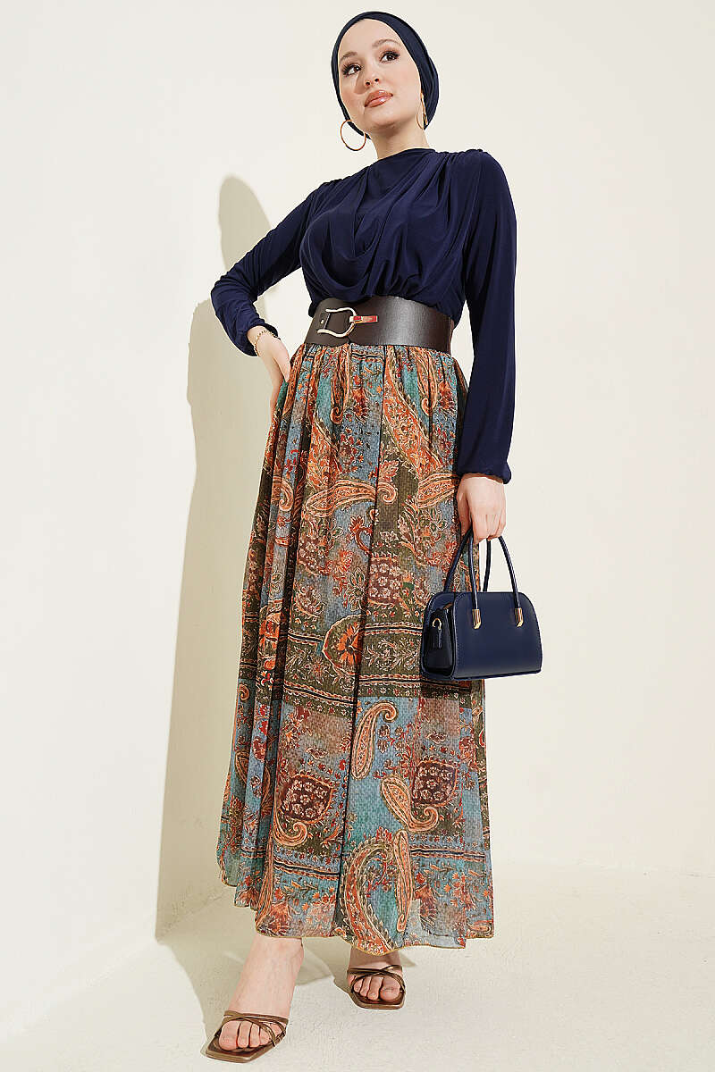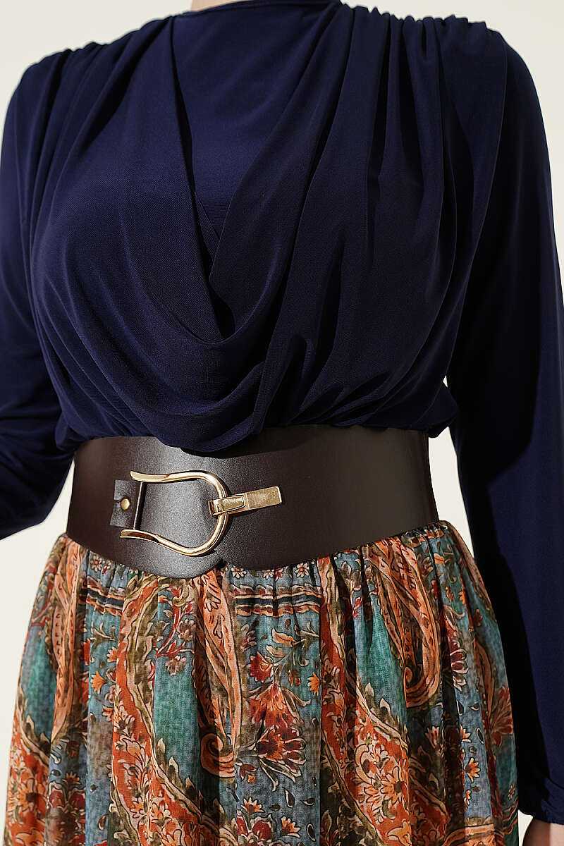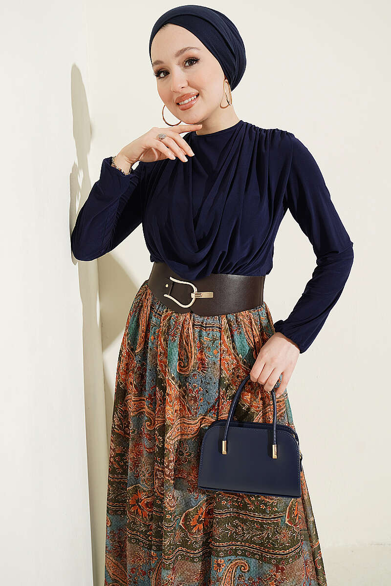 Kemerli Etnik Desenli ikili Takım Lacivert