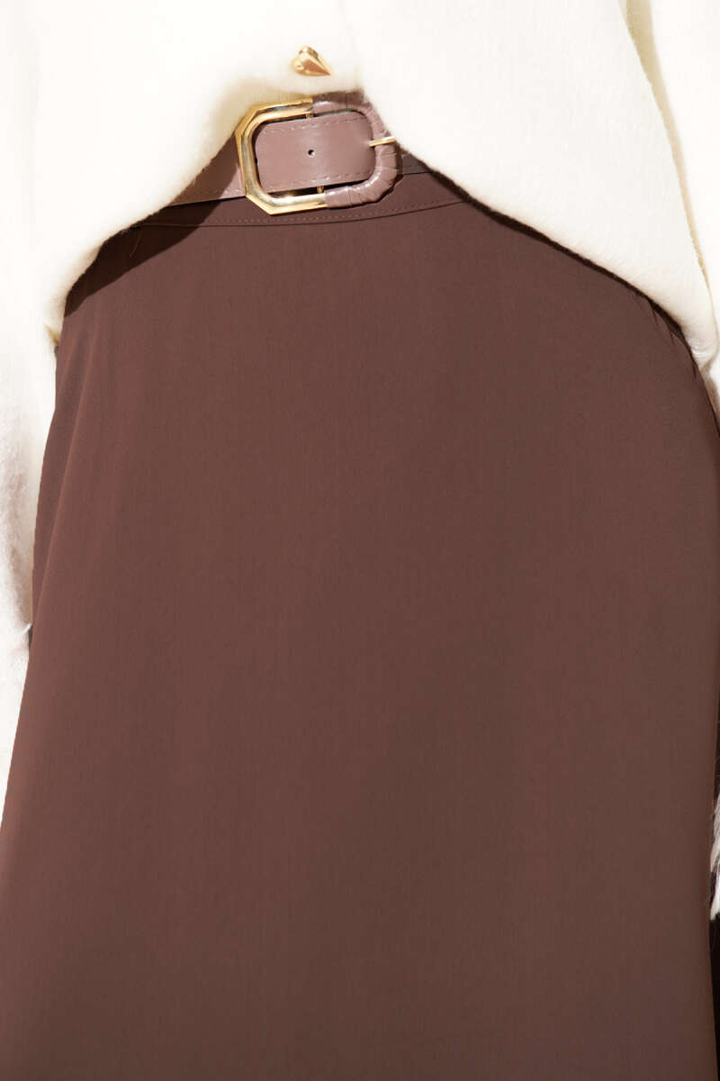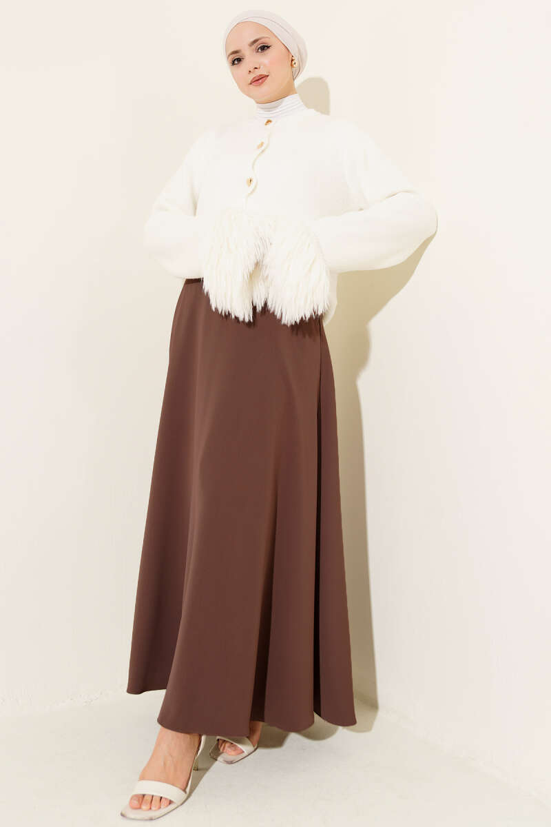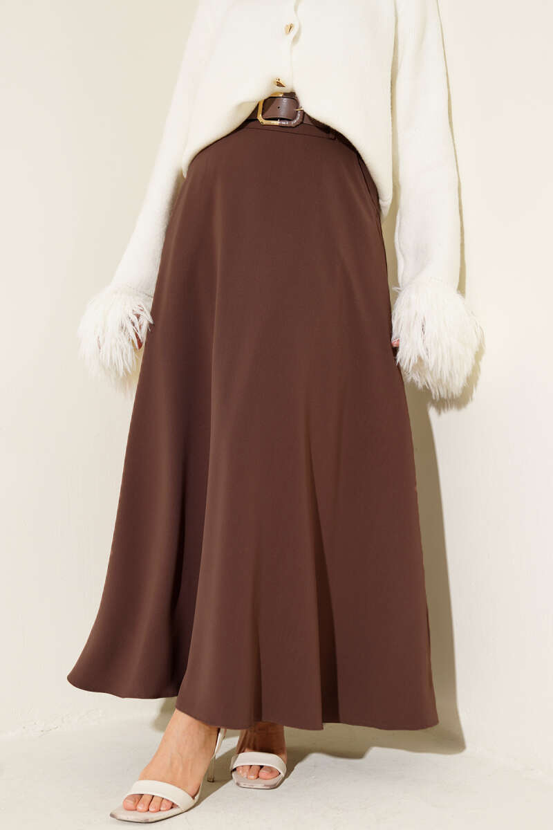 Bel Lastikli Tül Çiçekli Etek Kahve