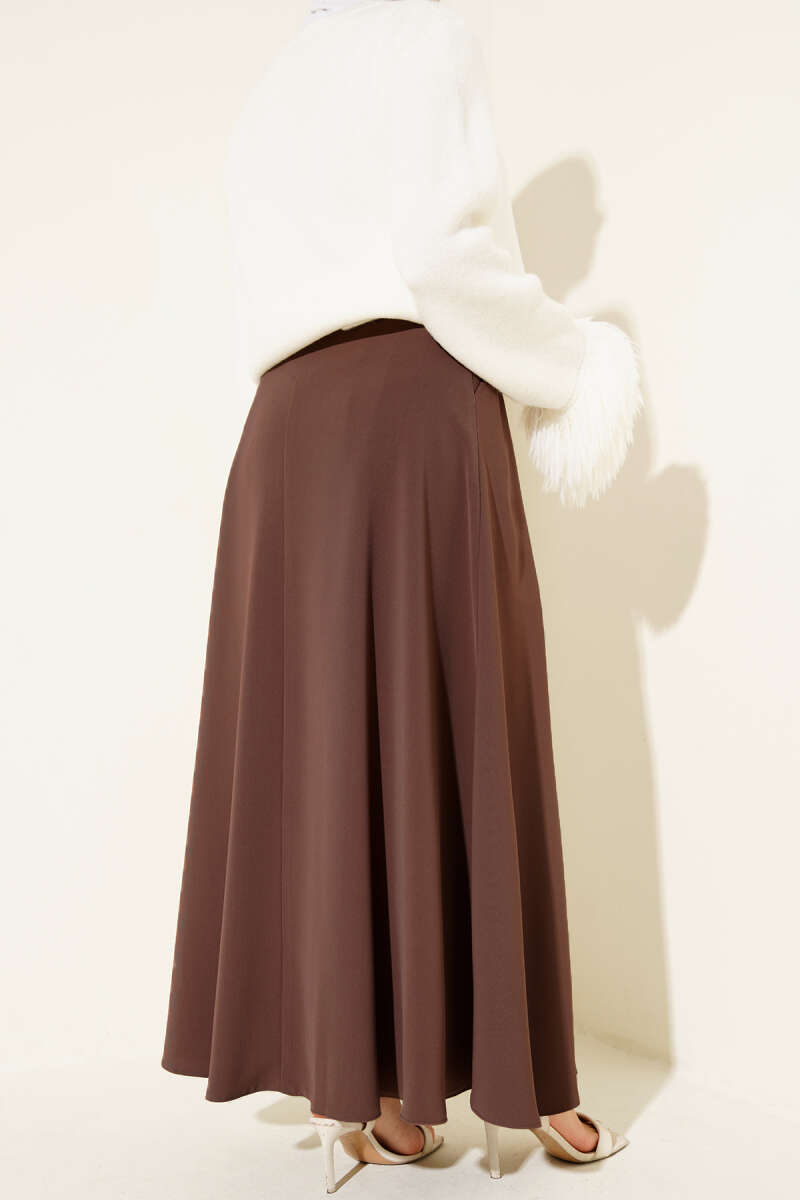 Bel Lastikli Çiçek Desen Tül Etek Kahve