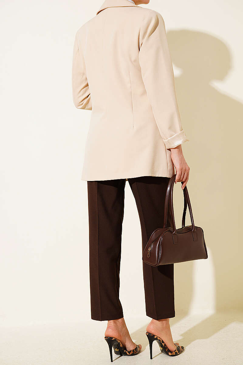 Kemerli Fermuarlı Dar Paça Pantolon Kahve