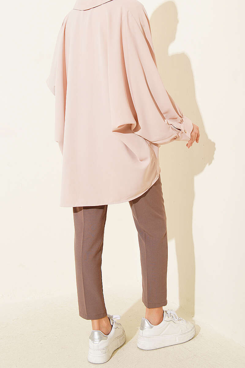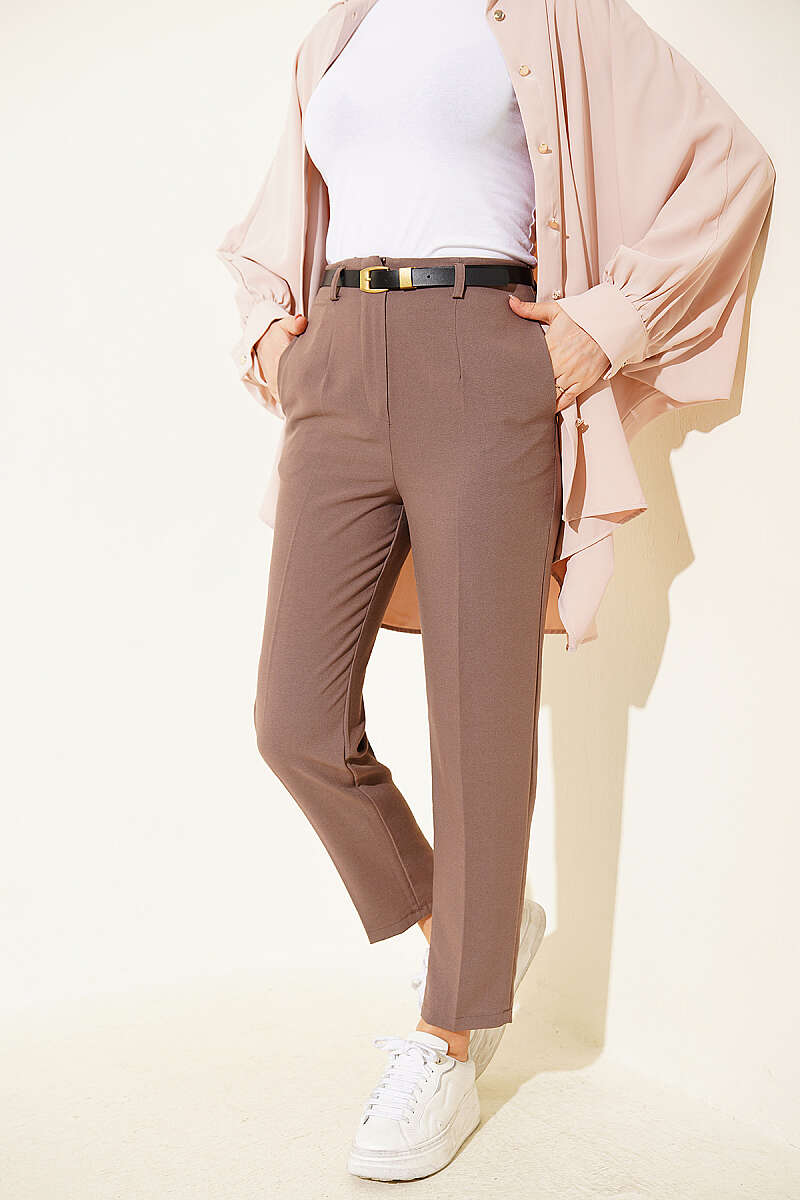 Kemerli Fermuarlı Dar Paça Pantolon Vizon