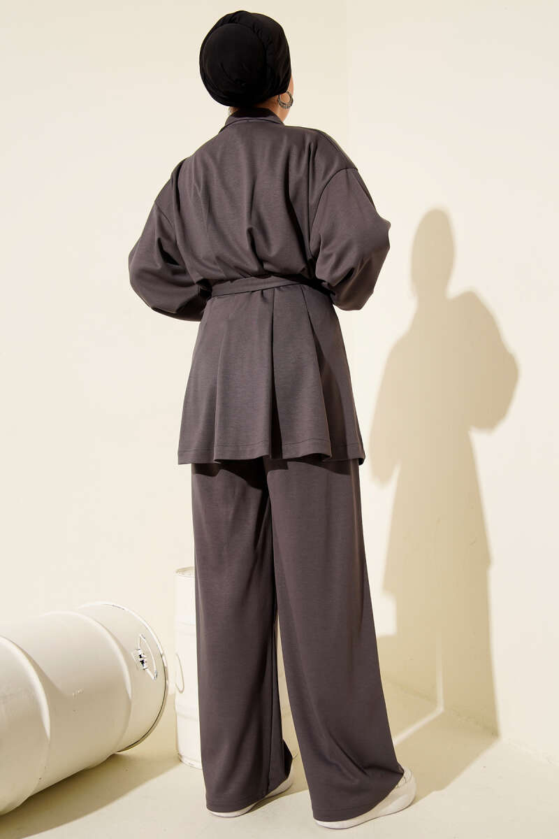 Çapraz Bağlamalı Triko Takım Gri
