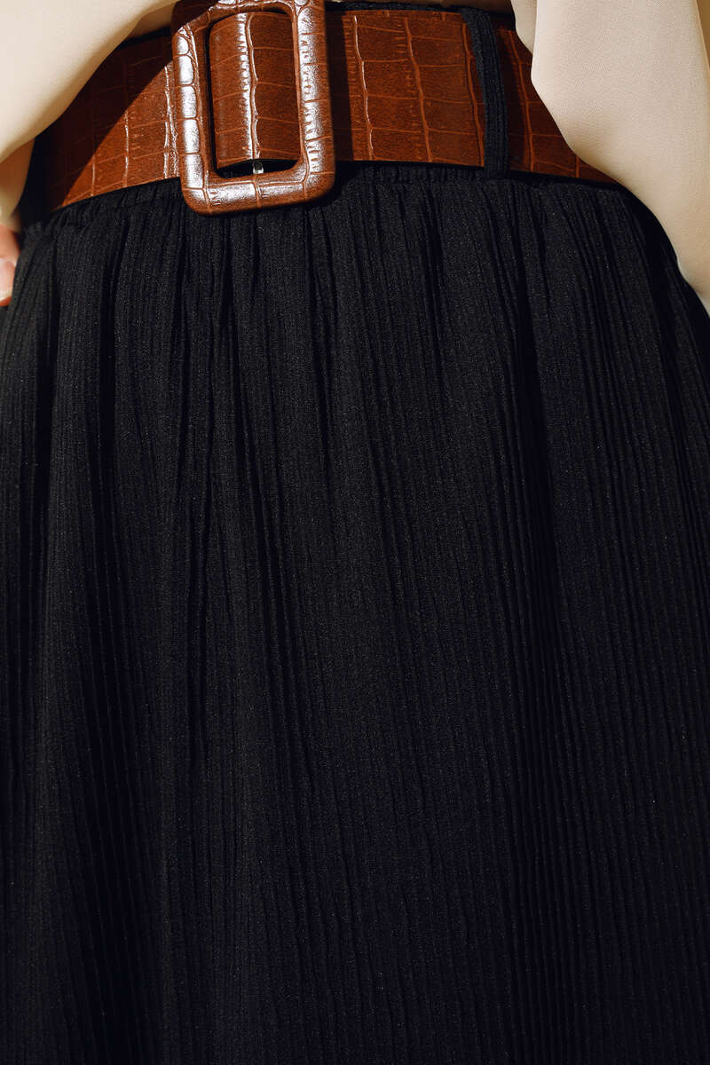 Badem İnci Tokalı Kemer Siyah