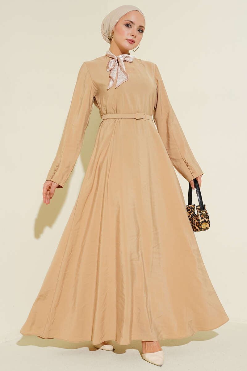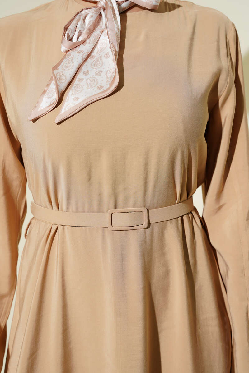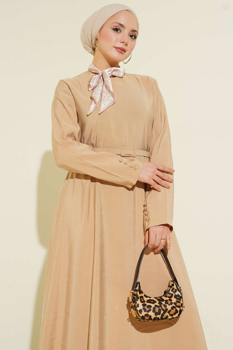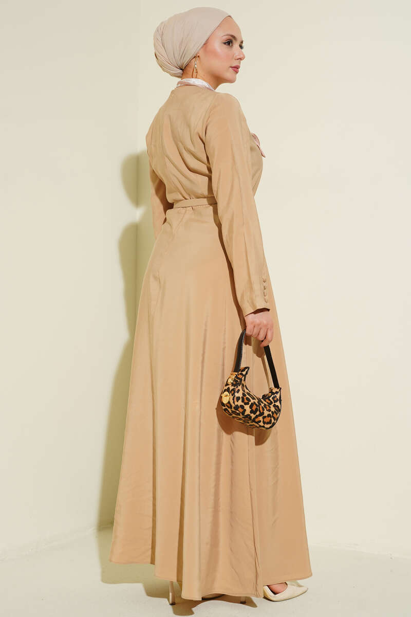 İnce Çizgili Boydan Düğmeli Elbise Taş