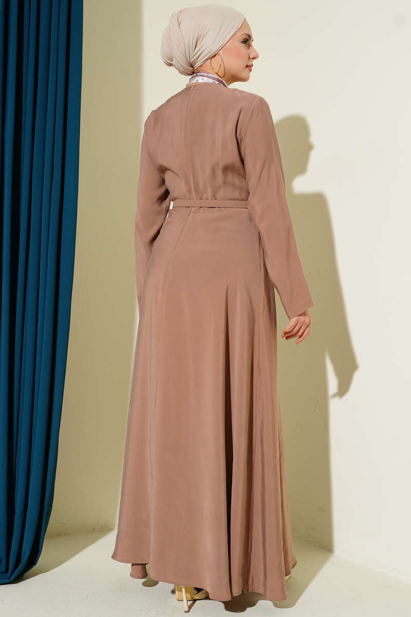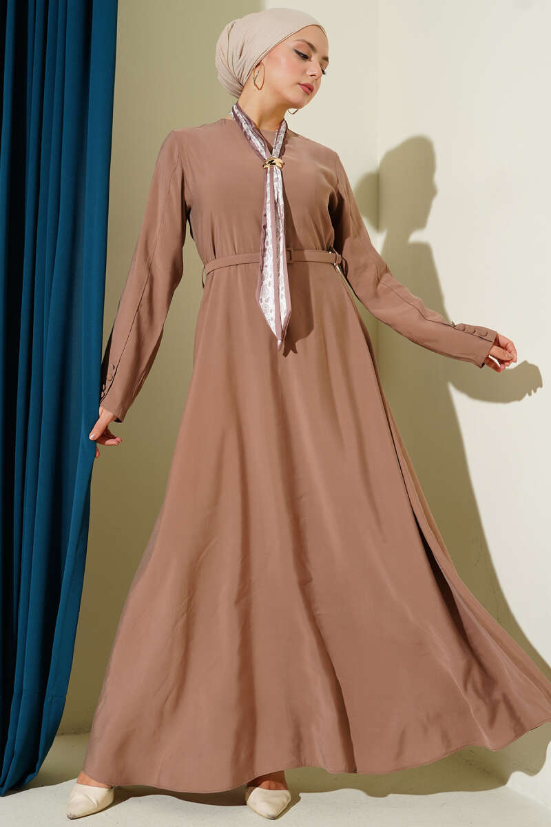 İnce Çizgili Boydan Düğmeli Elbise Taş