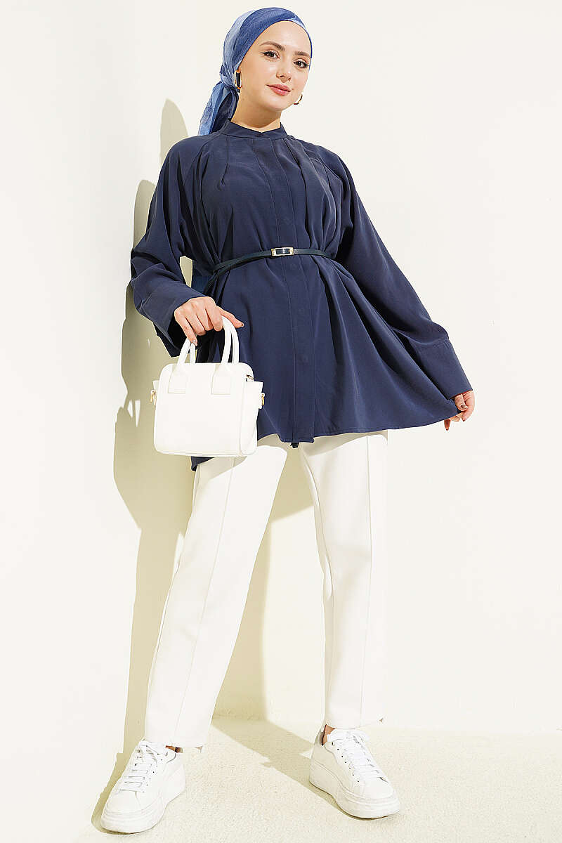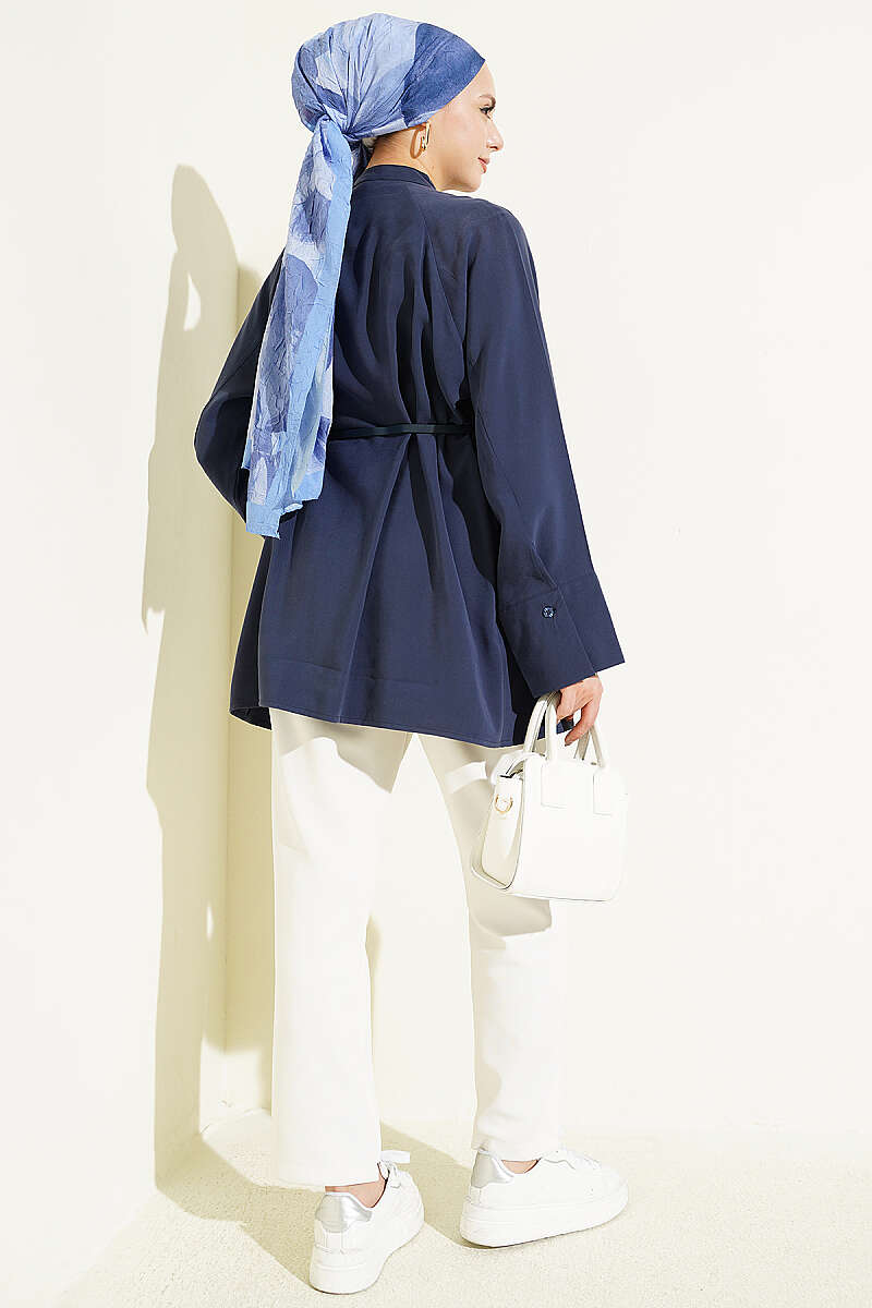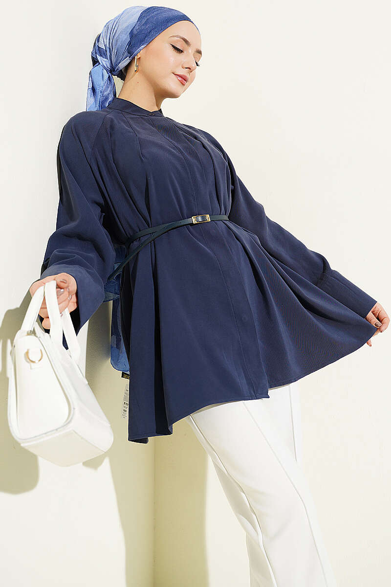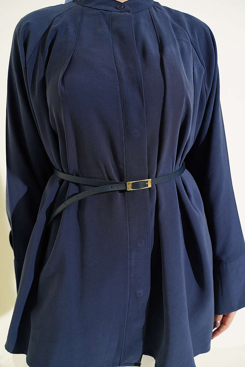 Kemerli Hakim Yaka Modal Gömlek Lacivert