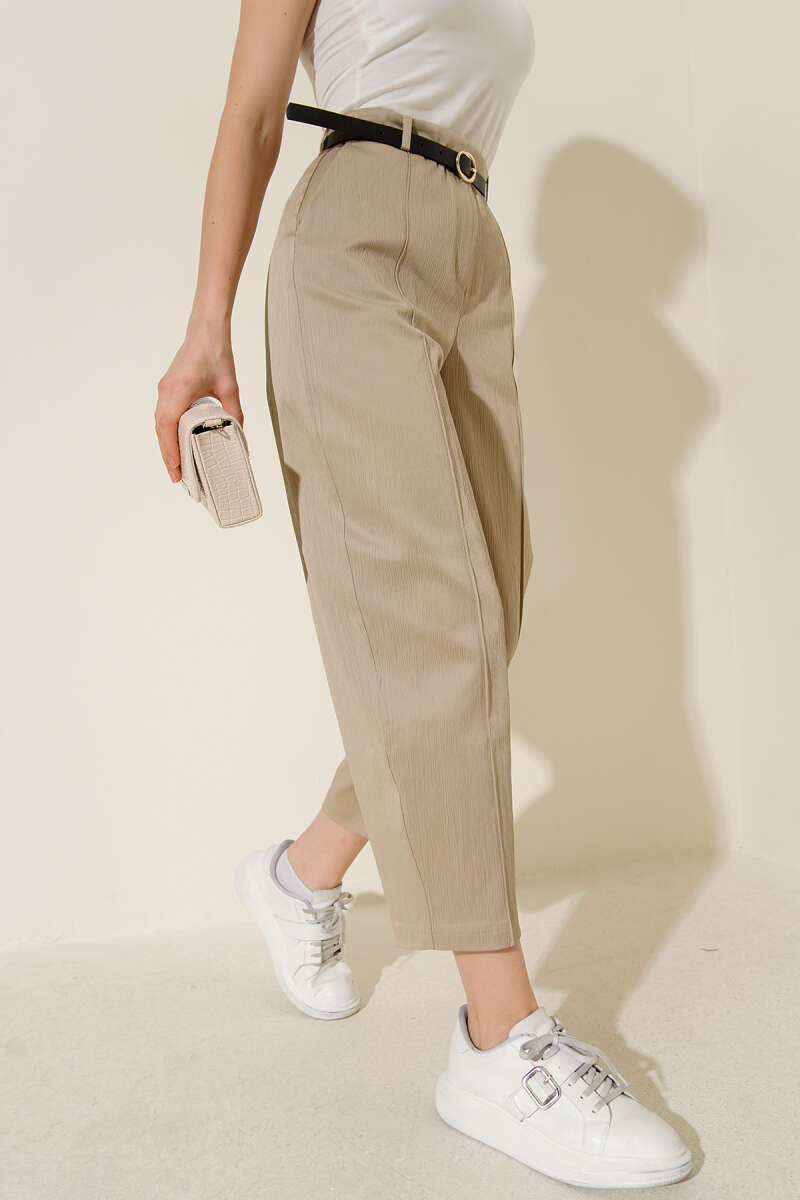 Kemerli Havuç Pantolon Bej