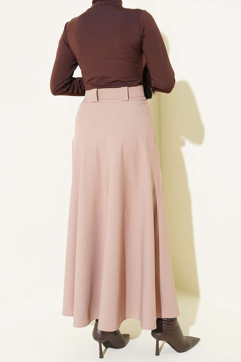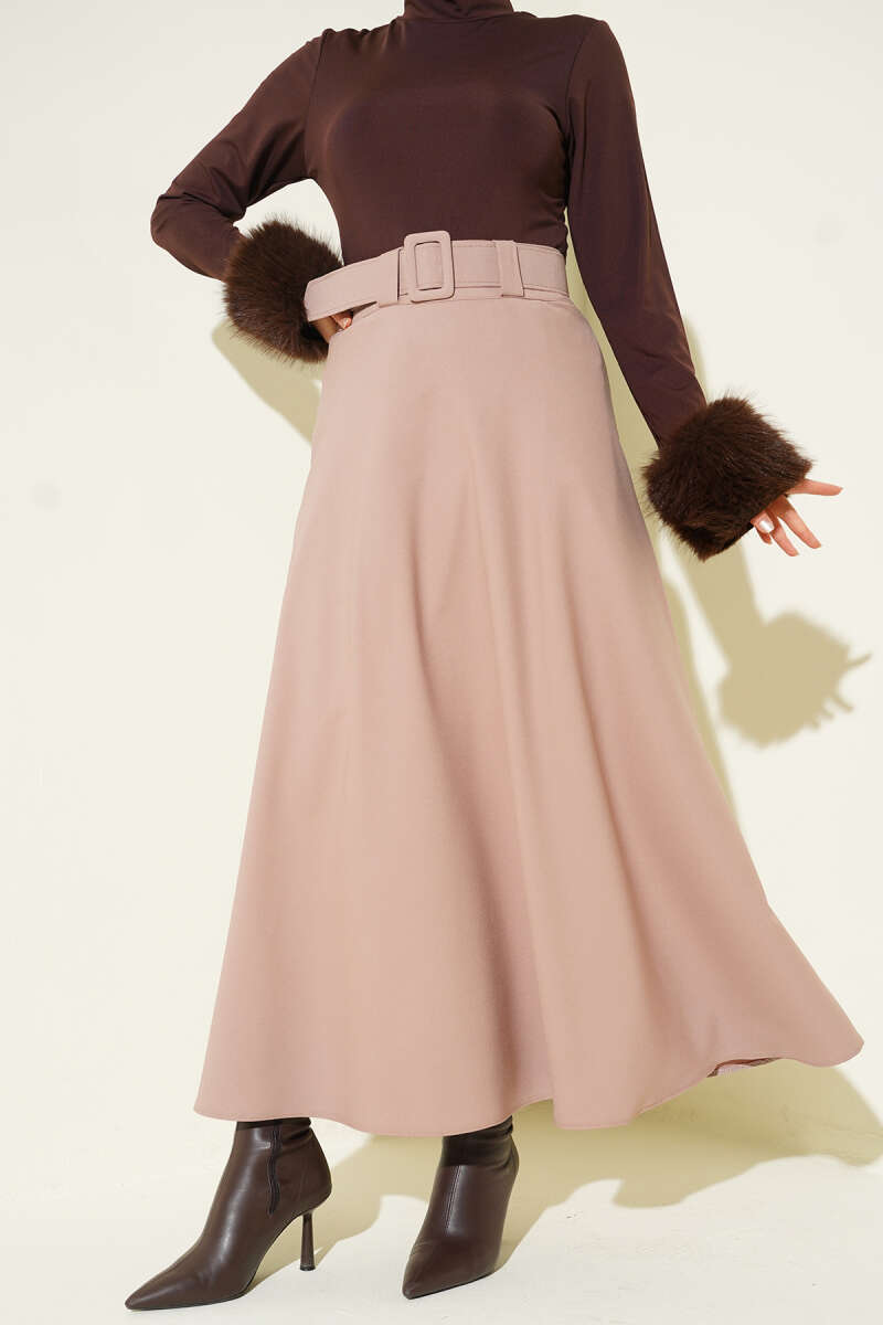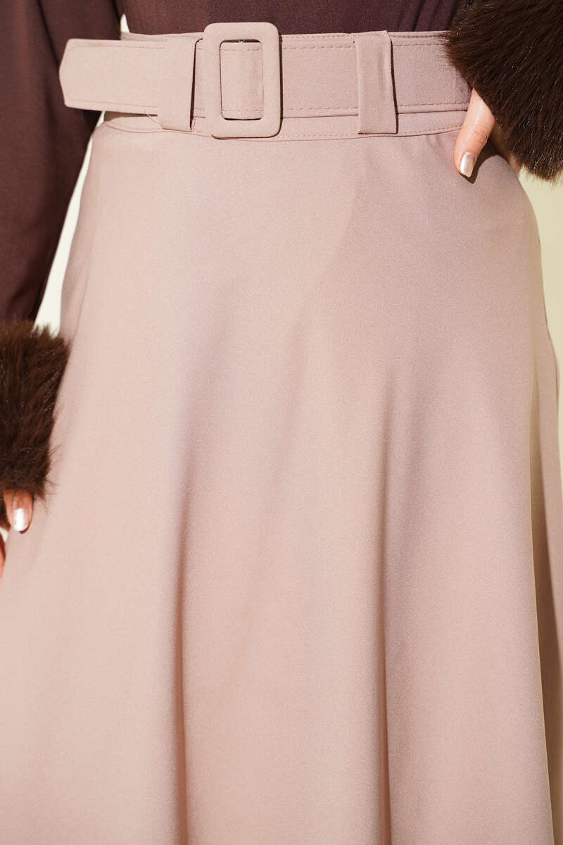 Ekose Desenli Fermuarlı Kaşe Etek Bej