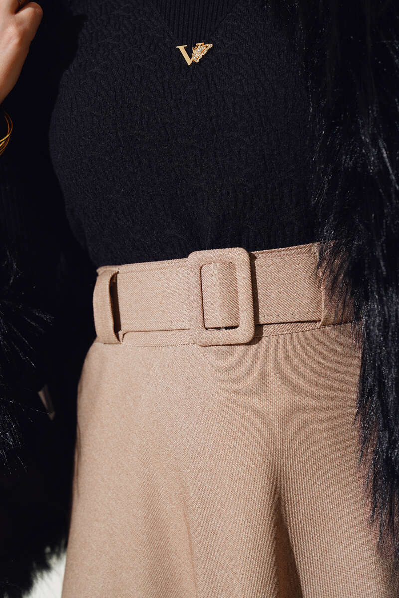 Leopar Desenli Şardonlu Triko Hırka Latte